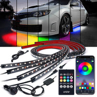 ?Superior Brightness & Uniformity? The underglow LED lights for cars feature 256 SMD 5050 LED chips with a 3-in-1 RGB design, this underglow kit for cars delivers brighter and more even light output. Enhance the look of your vehicle with outstanding illumination. | ?Dual Control & Versatile Modes? The under glow kit for cars supports APP and remote control. The APP offers 5 functional modes: multi-color DIY, music mode, rhythm, functional mode options, and timing function. Create up to 16 million custom colors with the car underglow lights. The remote control provides 8 static lighting modes, 2 preset jump modes, 2 preset fade modes, 4 sound-activated modes, and brightness adjustment for endless customization. | ?IP67 Waterproof Rating? With an IP67 waterproof rating, these LED underglow for cars are protected to work reliably in harsh weather conditions. Rain, snow, or dusty roads won't compromise their performance. | ?Easy Installation? Neon lights for cars are simple to install, the RGB light strips can be powered via a 12V cigarette lighter or fused positive and negative power wires. The back of the under car led lights features strong adhesive, and the included mounting hardware (screws, snaps, and zip ties) ensures stable installation that won