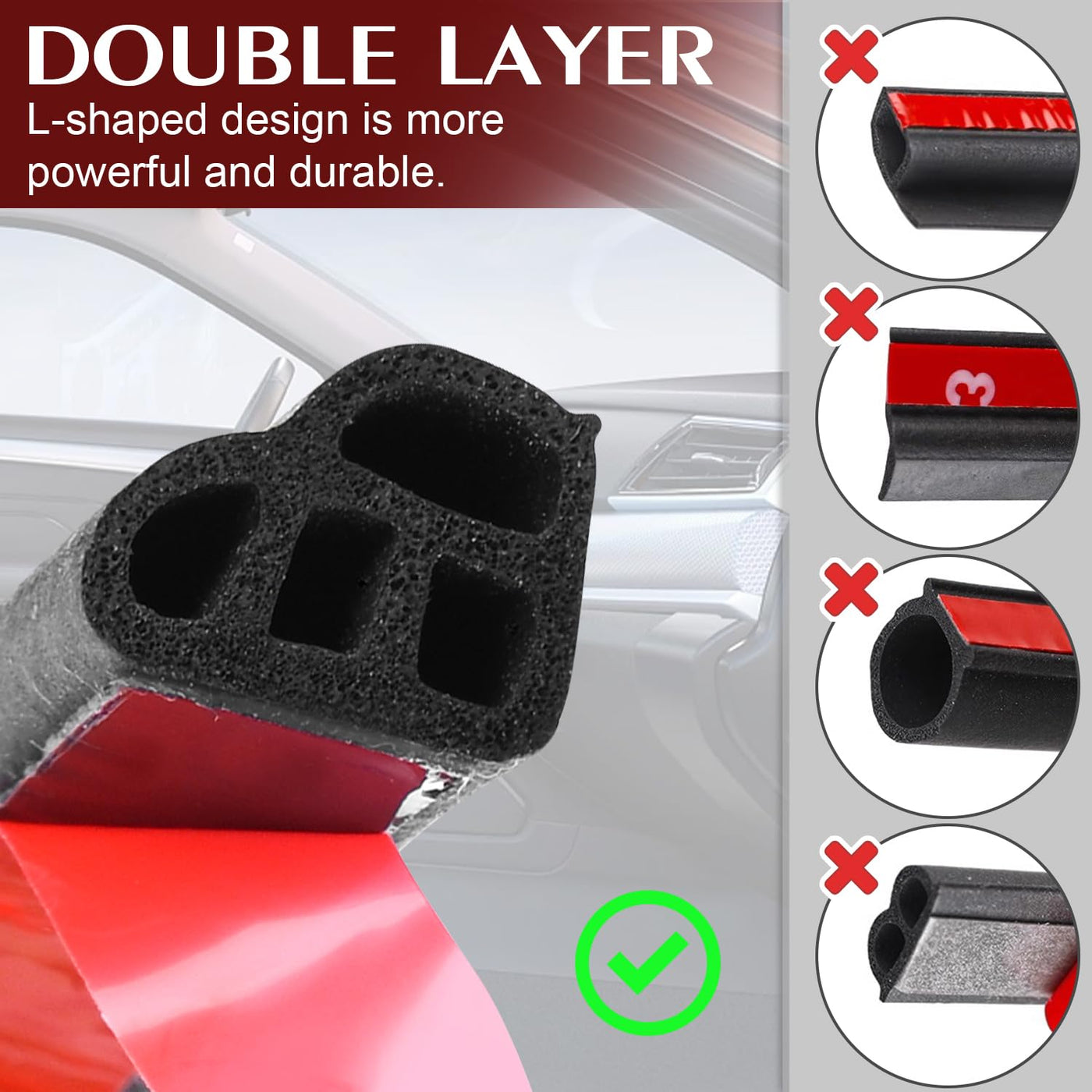 Car Weather Stripping Self Adhesive 33Ft Double Layer L Shape Automotive Soundproofing Weatherstrip Adhesive Universal Car Door