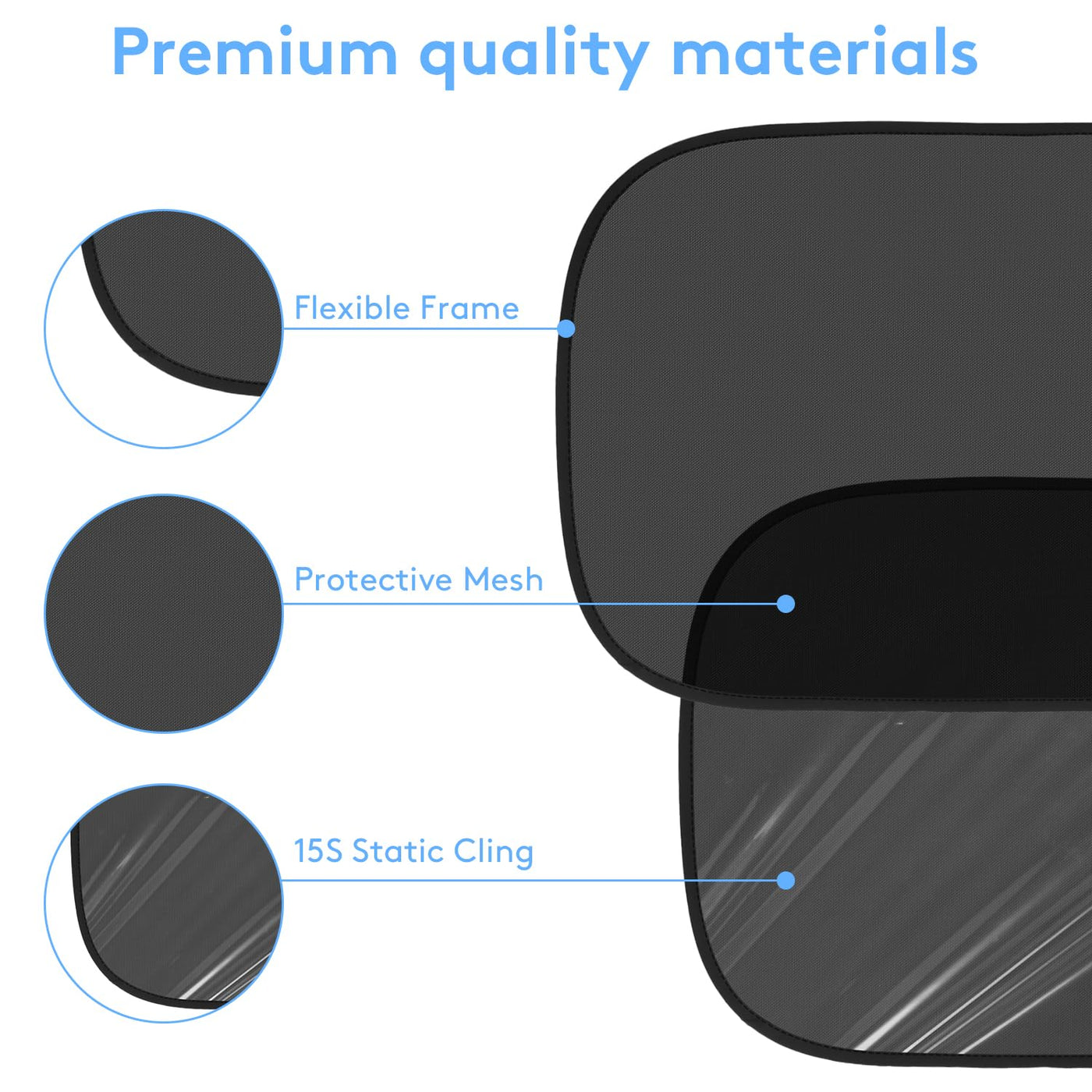 Designed for many mid-sized and compact cars, as well as some small SUVs and crossovers, our semitransparent car window shade for baby come in a convenient 2-pack, each measuring 17 x 14 . Please measure your windows to ensure perfect fit.