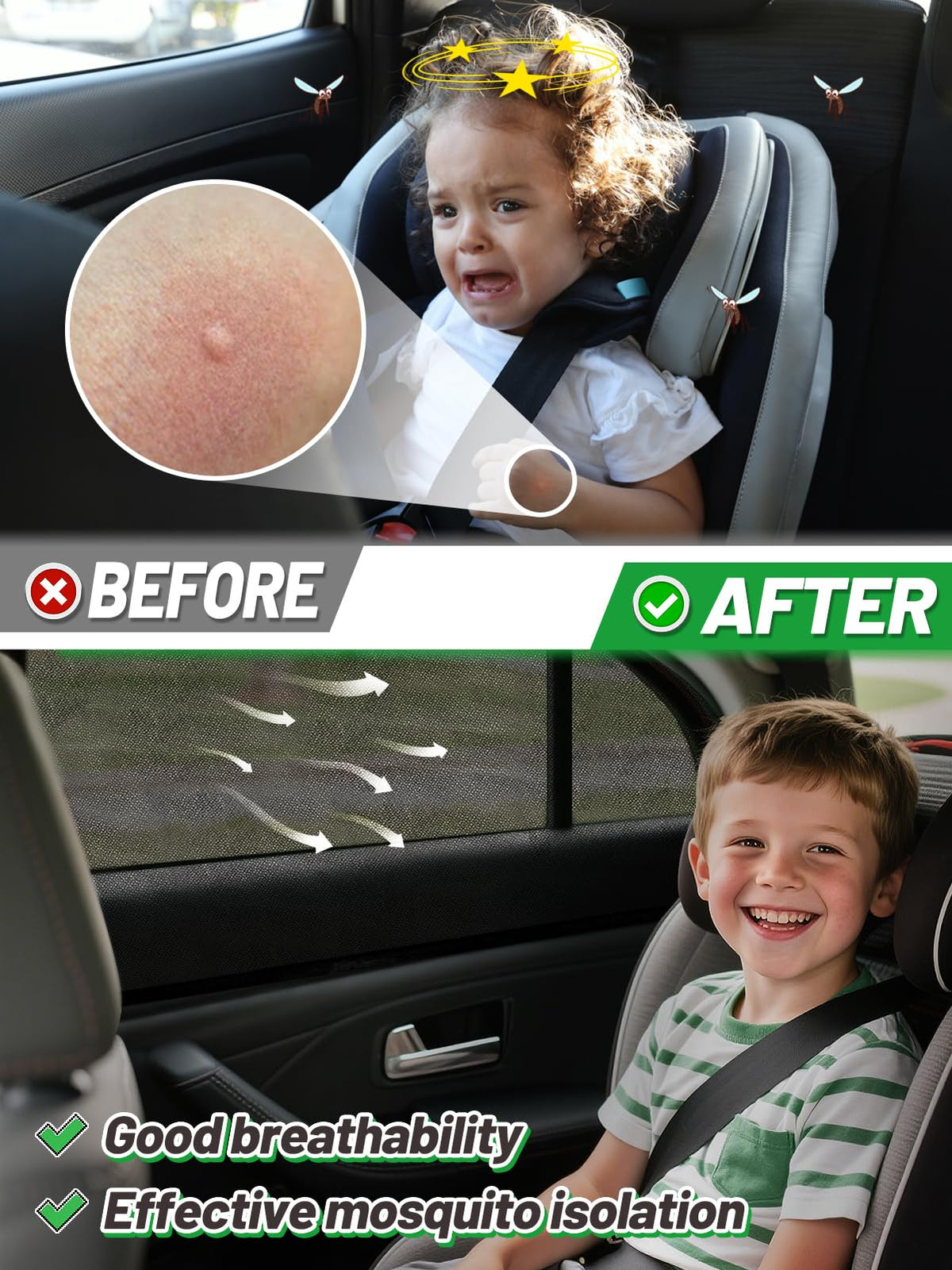 Car Window Shades for Sedan - 4 Pack Stretchy Sun Shade Mesh Side Car Window Screen Covers for Camping Family Baby Pet Anti-Mosq