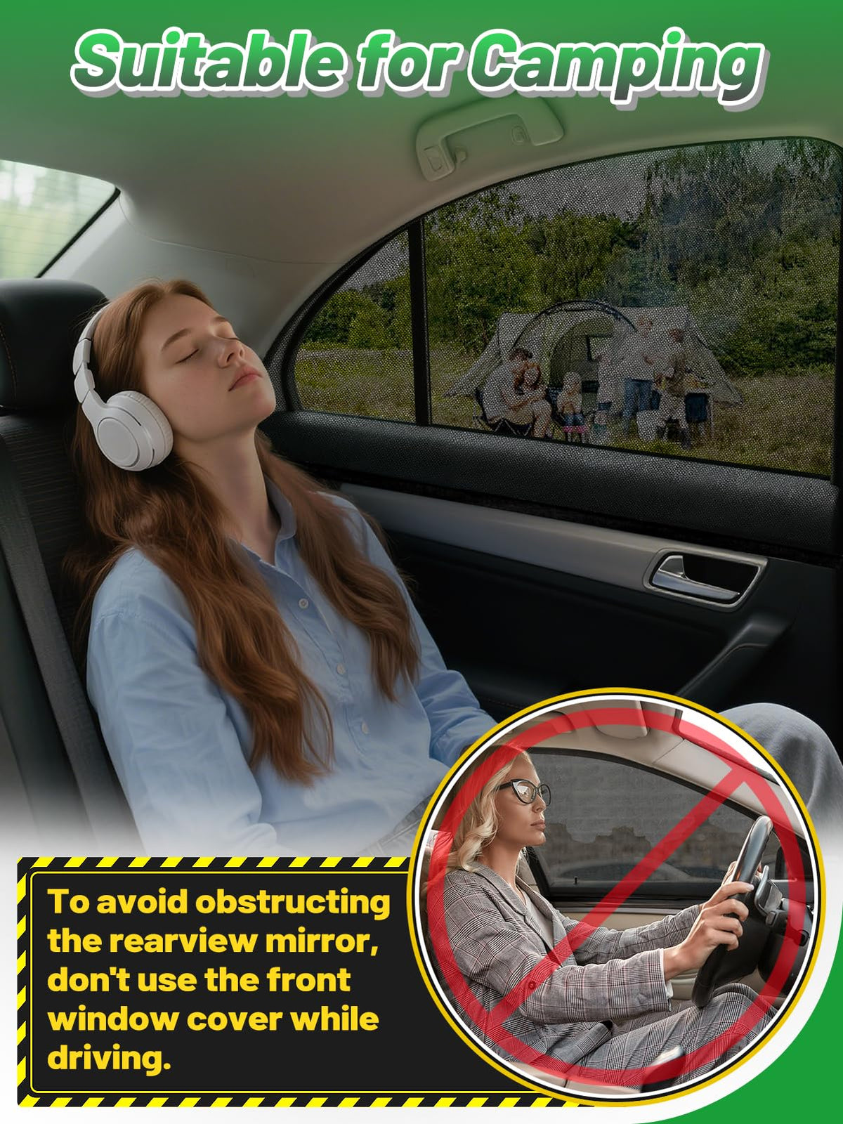 Important: Please note that the front side window cover should not be used while driving, as it may block the rearview mirror and pose a safety hazard!!! Specification: - Quantity: 4packs (2 front side windows, 2 rear side windows) + 8 hook and loop fasteners + instructions. - Material: mesh fabric, spandex high-elasticity fabric. - Size: suitable for most sedans. NOTE: The car window shade is not suitable for frameless windows.