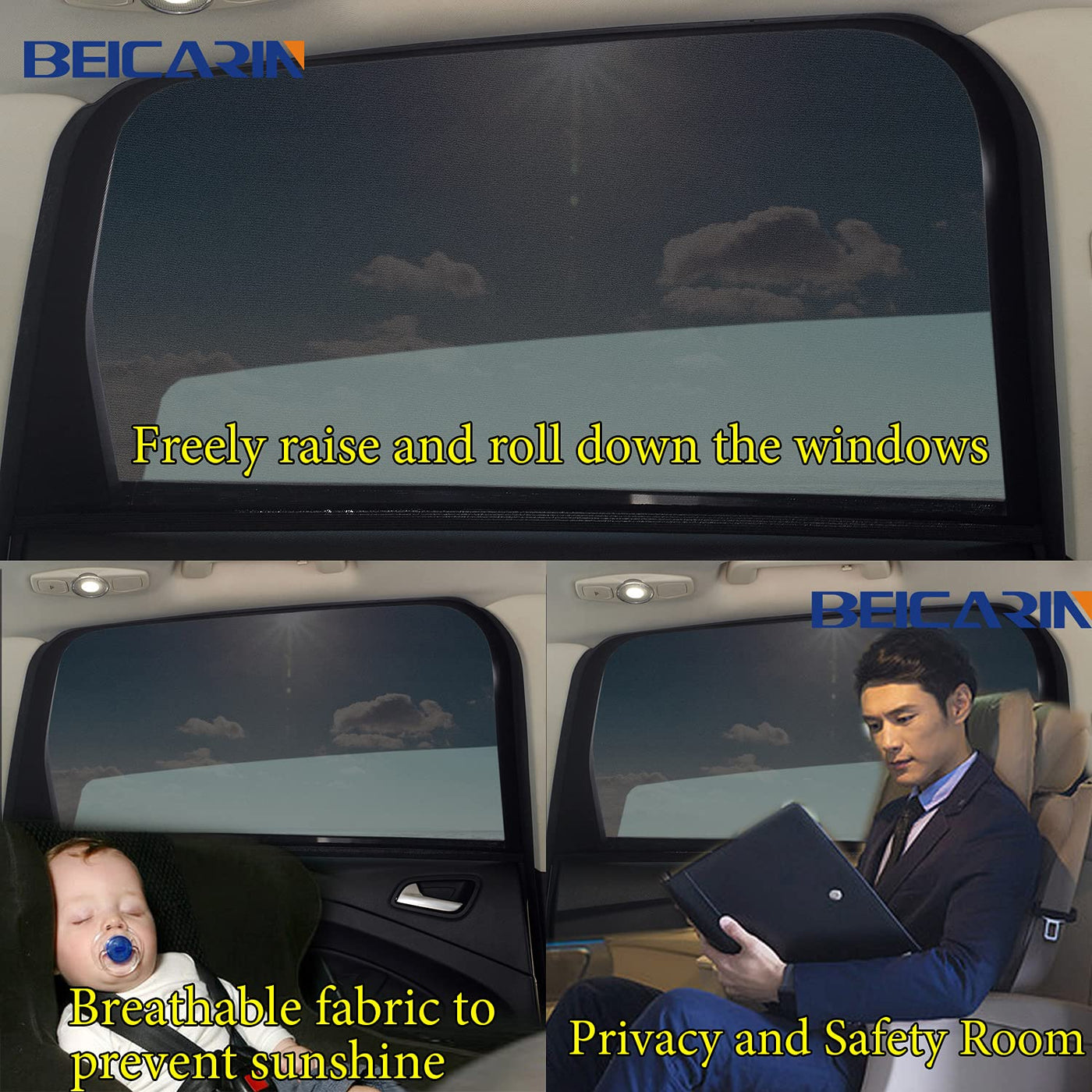 Do you want your child exposed to the sun's heat? Our auto sun shade for windshield 100% covering the side window then provides maximum shading protection for you and your family. ► Please Check Your Car Window Size before Order Size M Dimension: Fit Length:22.8"(Min) - 39.5"(Max) Fit Height: 19.5"(Min) - 20.9"(Max) Package included: 2 x Car Windows Sun Shade NOTE: Please take the sunshades off in raining day!! Otherwise the sunshades will soak up the water and brings it into your vehicle.2. Due to the material is stretchy spandex mesh, if the length for your window have reach the MAX, the hight will be force to MIN. The same for hight MAX, the length to MIN.
