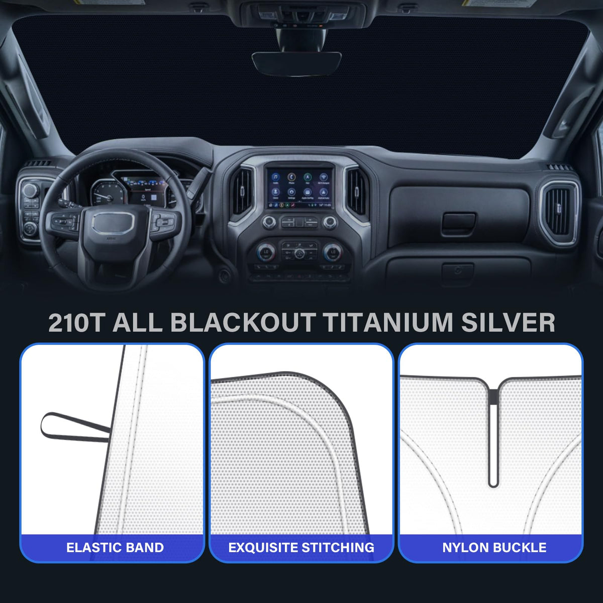 - Q: How does the sunshade protect the truck’s interior? A: The sunshade protects the truck's interior by reflecting sunlight and reducing heat, which helps prevent leather seats from cracking and fading due to UV damage.