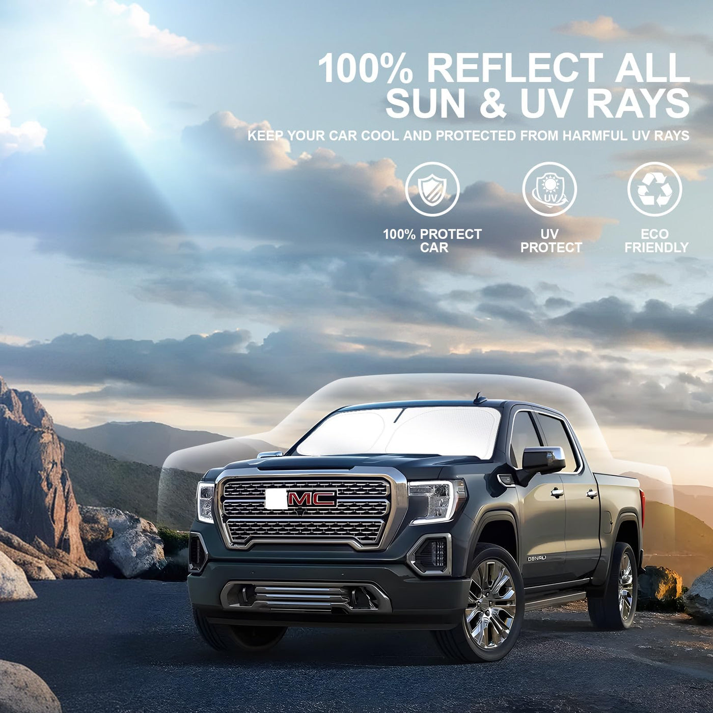 Car Windshield Sun Shade Compatible With 2023 2022 2021 2020 2019 Gmc Sierra 1500 2500 3500 Slt, At4, Denali Accessories Foldabl