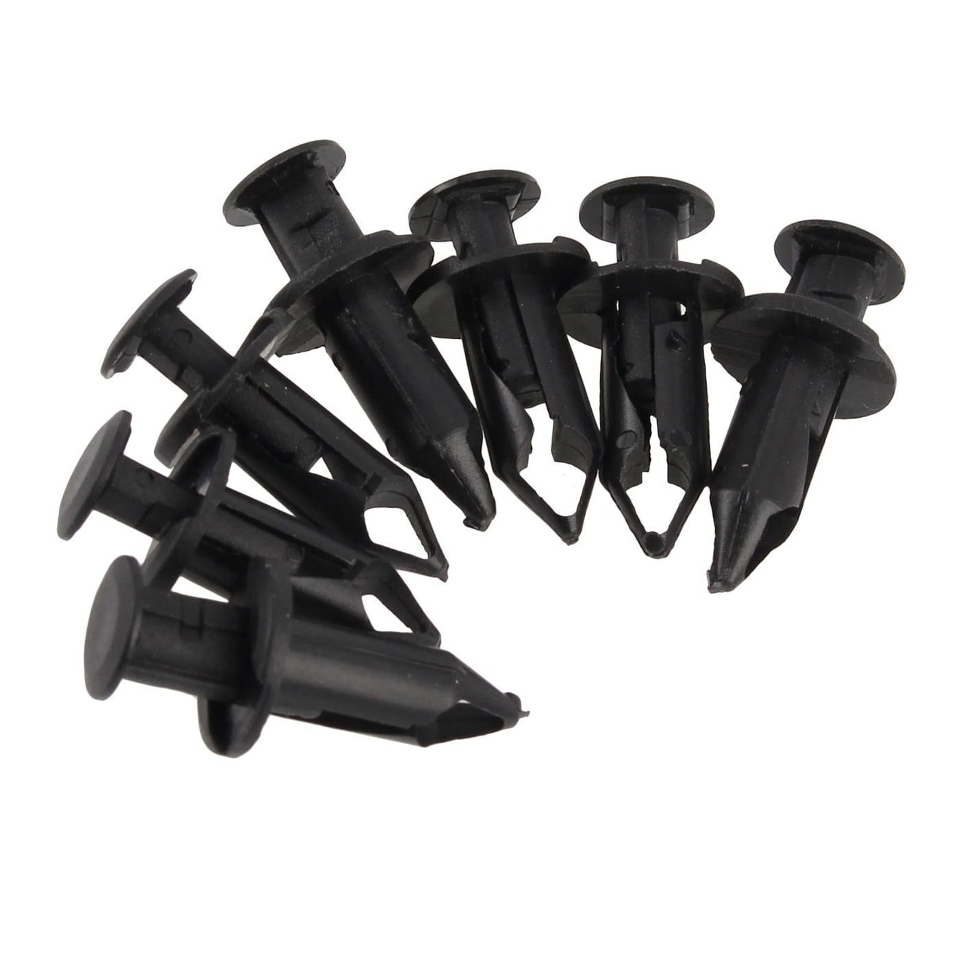 This set of body fastener rivets are dedicated to the side by side machine and ATV vehicle, even snowmobile. They're widely used and reusable for door trim, radiator shield yoke, fender, bumper, side skirt, grille, engine cover and splash shield retainers. Keep some spare in case, maybe you need it often. Specification: Made of high-quality black nylon material, anti-wear and anti-corrosion, would not break or crack easily during use. Dimensions: Head Diameter : 11mm / 0.43''Bottom Head Diameter: 15mm / 0.59''Stem Length: 21mm / 0.83''Stem Diameter: 8mm / 0.3''Fits Hole Size: 8mm/0.3'' Fitment: Generally, The set of push-type fastener clips are universal to fit on the most of UTV/ATV body position as long as it's 8mm hole, can hold your parts very tightly. Fit For The Following Vehicles: Suzuki: Eiger, Ozark, Vinson, KingQuad, Z250, Z400, LTR450Kawasaki: Bayou, Brute, Force, Prairie, KFX400, KFX450, KFX700Polaris: Boss, Predator, Rangers, RZR, Scrambler, Sportsman, Trail, GeneralHonda: 250Ex, 300Ex, 400Ex, TRX 250 300 350 400 450 500 650 680, Foreman, Rancher,Rincon,Rubicon. Package includes: 120pcs Clips1pcs Removal ToolHow to Use: Check the hole size of your car, make sure the hole size is 8mm.Order the car clips from Carbbia.Remove the old clips with a remover tool from your car.Put the two parts of the new clips together.Push the clips into the hole.