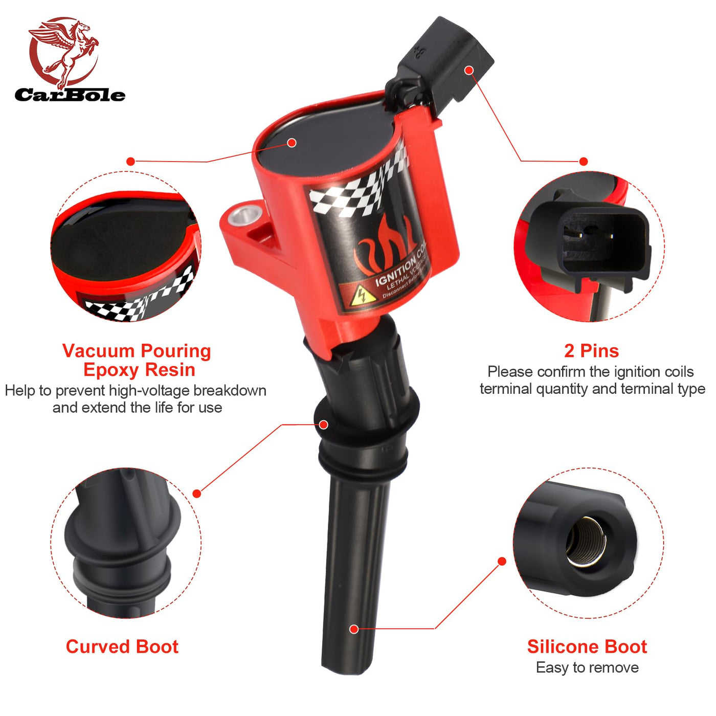 Carbole Ignition Coils Pack Dg508 & Iridium Spark Plug Sp479, Compatible With Ford E350 E450 Econoline Super Duty F350 F450, Rep
