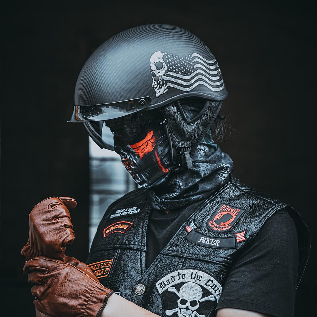 Carbon Fiber Open Face Retro Motorcycle Helmets Men Women Half Face Helmets for Motorbike Cruiser Chopper Moped Scooter ATV (Fla