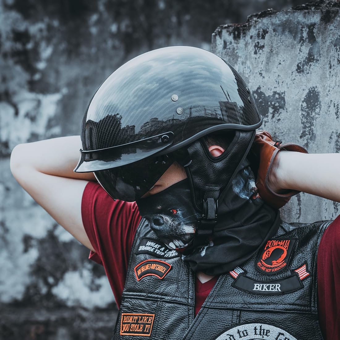Product Description Professional Grade Motorcycle Helmet: Meets or exceeds DOT FMVSS 218 standard. Exciting fashionable design with lots of advanced features. Exactly what you need for Street Bike, Racing, Cruiser, Scooter and much more. For both men and women. Outstanding Materials: Carbon Fiber Shell, Multi-Density EPS, Reinforced Chin Strap, Quick-released Buckle Comfortable Liner and Pads: Fully removeable and washable liner and pads to keep helmet clean, fresh, and odor free. (Not included).