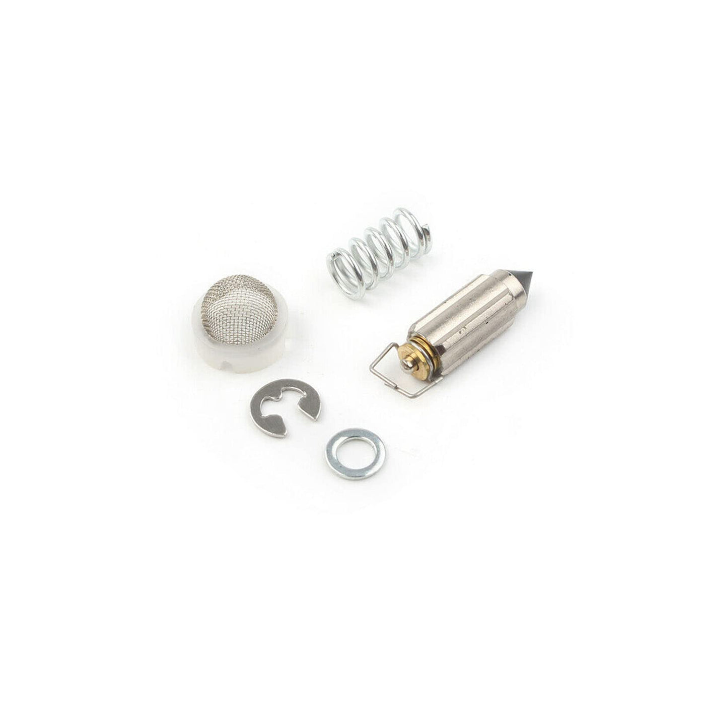 Q: What components are included in the rebuild kit?A: The kit includes a float chamber o-ring, assorted o-rings, a jet needle, a pilot screw, a spring, a needle and seat, a flat washer, an E-clip, and various pan head bolts, which are essential for a complete carburetor rebuild.