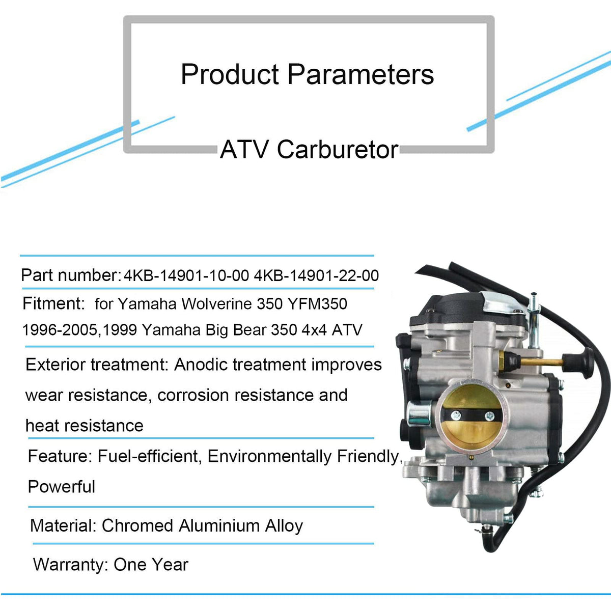 Carburetor Replacement for Yamaha Wolverine 350 YFM350FX YFM350 FX 4X4 1996-2005 & 1999 Yamaha Big Bear 350 YFM350 4x4 ATV4KB-14