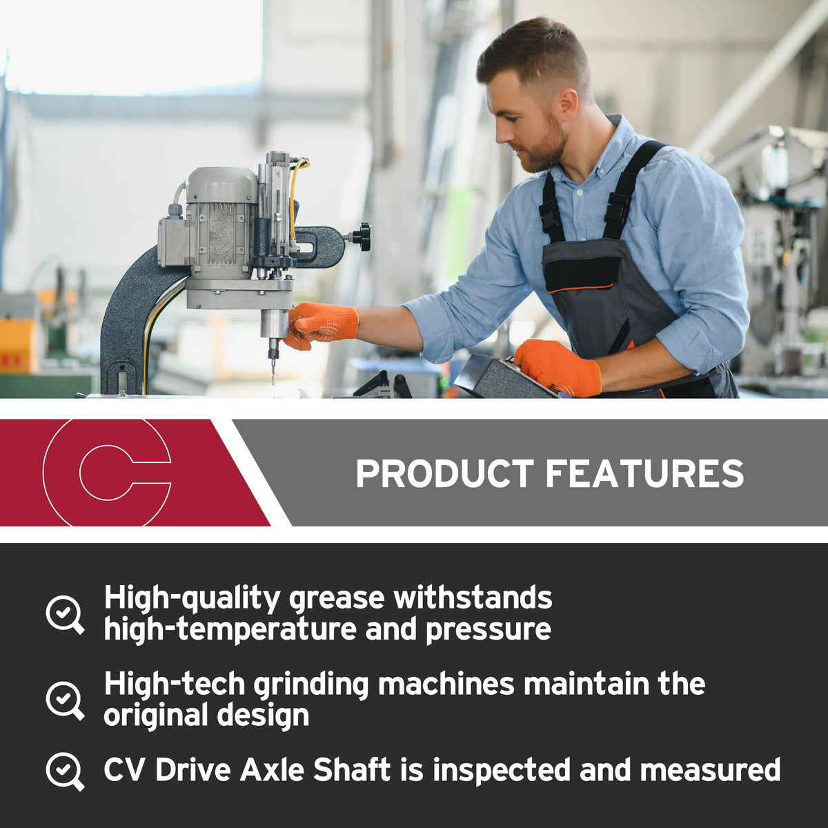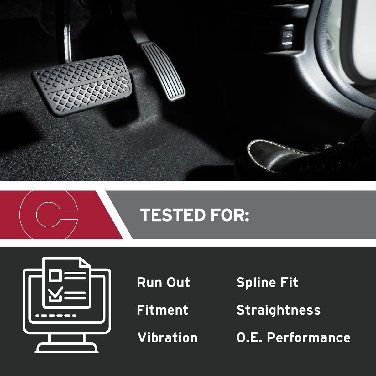 Designed to smoothly transmit torque at a constant speed, the Cardone Constant Velocity CV Axle Drive Shaft utilizes proprietary engineering processes to ensure they meet Original Equipment form, fit, and function. Neoprene boots are designed with additional bellows, when needed, to resist bellow stress and cracking, which is the leading cause of boot failure. The transmission seal diameter is precision-machined after heat treatment to ensure correct surface finish, promoting long seal life. High-quality grease withstands high-temperature and high-torque demands to ensure long-lasting, reliable performance. Boot clamps are pneumatically crimped, creating a perfect seal between the boot and housing. A new axle retaining nut is supplied with every drive shaft assembly for a hassle-free installation, due to the likelihood that the original retaining nut is worn or stripped. Additionally, all CV Axle Drive Shafts are individually verified for straightness, resulting in vibration-free performance at all speeds. We Build It Better: Since 1970, Cardone has been fixing what fails in the auto industry. Our success is fueled by our commitment to build better parts supported by better service.