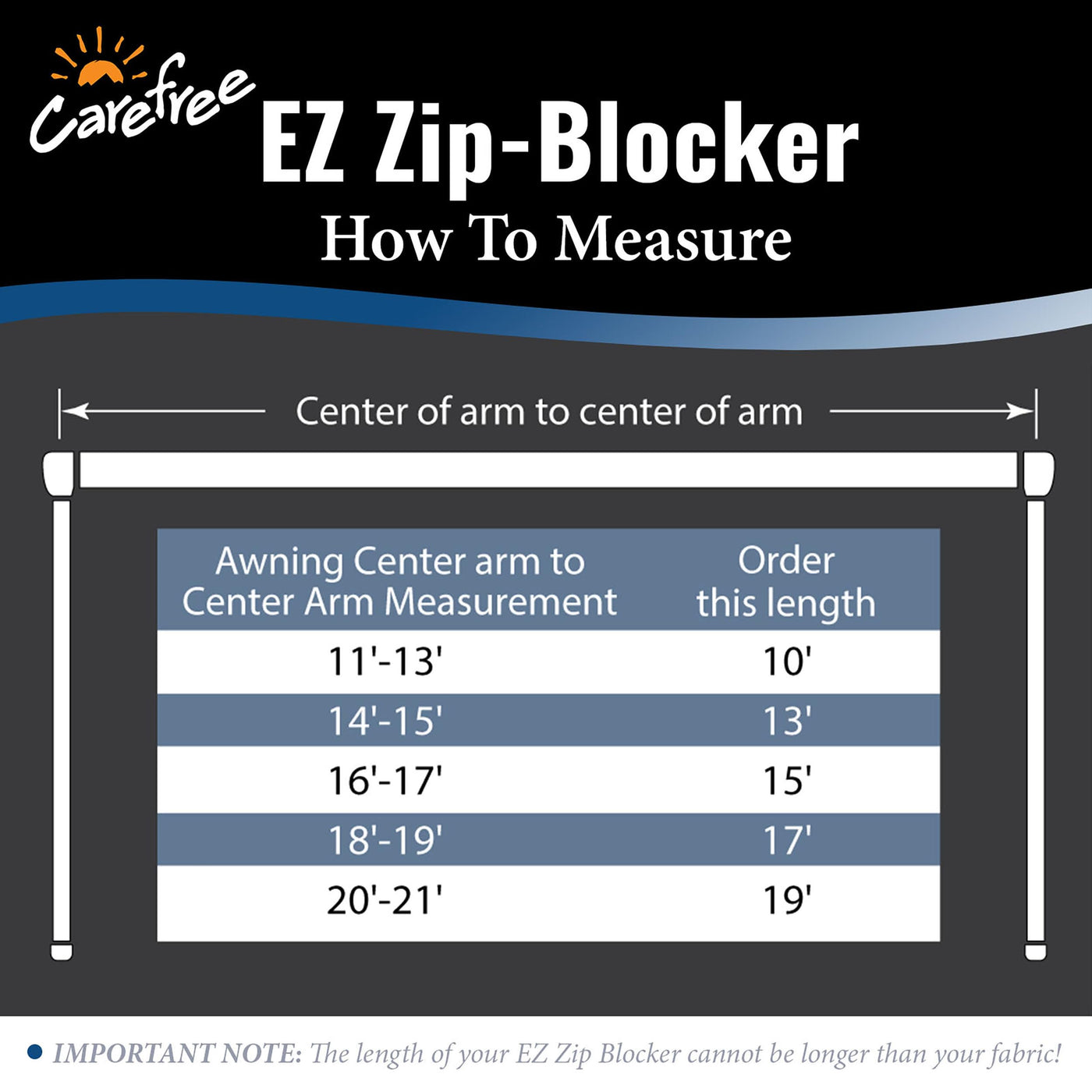 Q: What types of RV awnings is the Carefree EZ Zip Blocker compatible with?A: The Carefree EZ Zip Blocker is designed to complement popular scissor-arm truss style RV awnings such as Carefree Eclipse, Travel’r, and Dometic Weatherpro, ensuring an optimal fit and functionality.