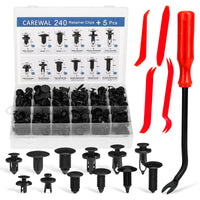 CAREWAL 240 Pcs Bumper Clips Car Clips Plastic Rivets of 16 Most Popular Sizes and 5 Fastener Removers Fasteners Push Retainer K