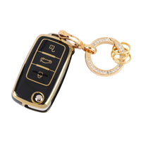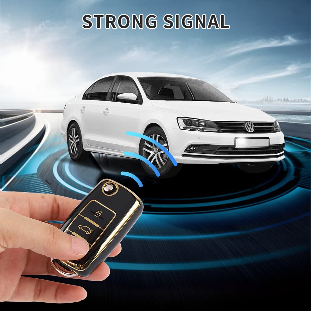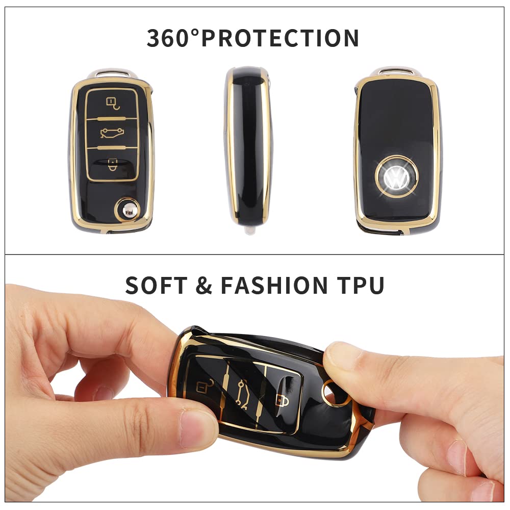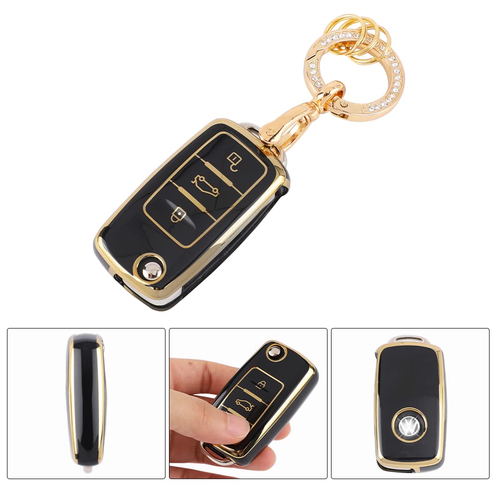 Carfib Key Fob Cover For Vw Volkswagen Accessories Beetle Eos Golf Gti Polo Mk5 Santana Tiguan Scirocco Touran Skoda 2019 2018 2017 2016 Key Case Holder Car Insert Key Chain Ring Women Tpu Black Gold