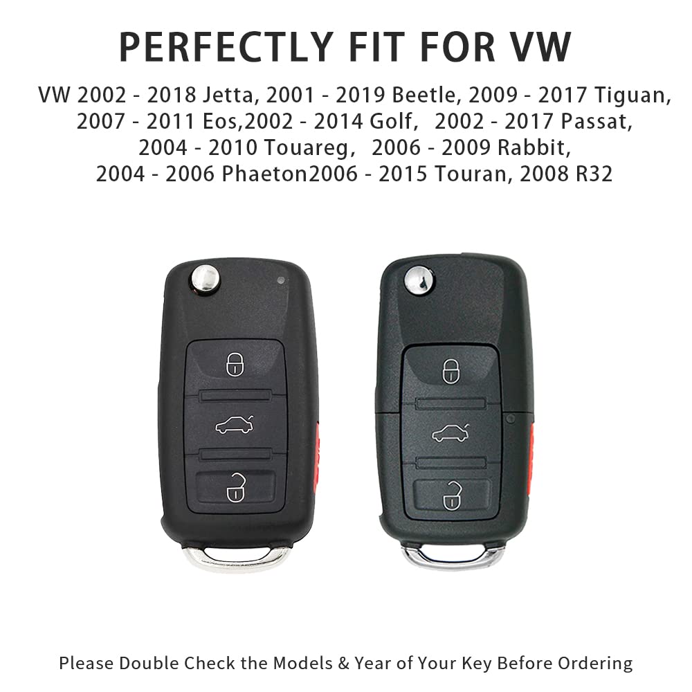 Q: Is the CARFIB Key Fob Cover compatible with my VW model?A: The CARFIB Key Fob Cover is designed to fit various VW models manufactured between 2002 and 2019. Specifically, it is compatible with the Beetle (2012-2019), Eos (2006-2018), Golf GTI (2002-2014), Jetta (2011-2018), Passat B7 (2011-2014), Polo MK5 (2010-2018), Santana (2013-2018), Scirocco (2009-2018), Tiguan (2009-2017), and Touran (2006-2015). Please ensure to compare your key with the models shown in the second image before purchasing.