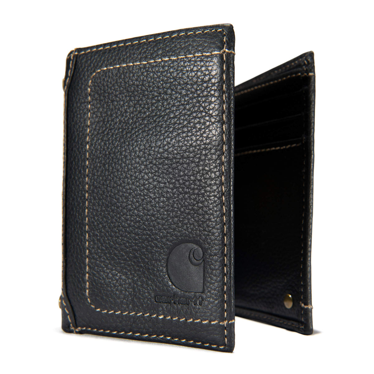 Carhartt Men'S Trifold, Durable Wallets, Available Canvas Styles, Pebble Leather (Black), One Size