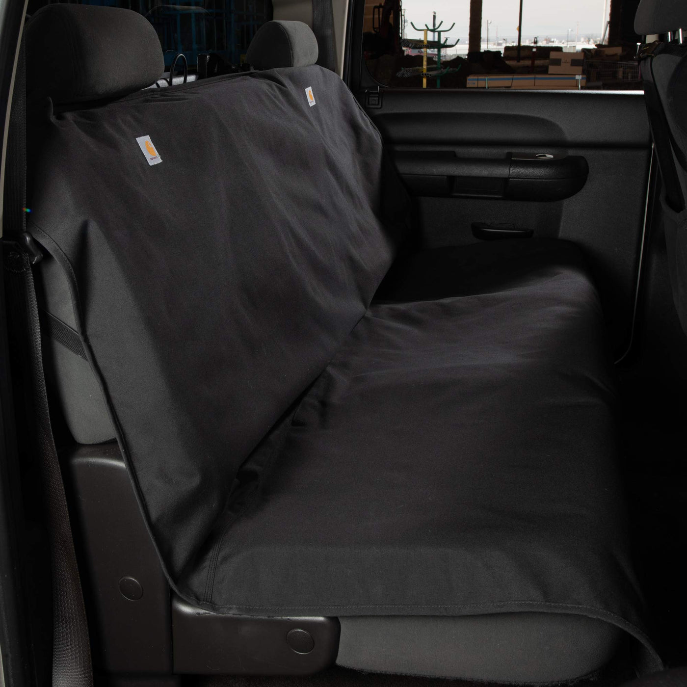 Q: What is the Carhartt Quick-Fit Nylon Duck Seat Protector made of?A: The Carhartt Quick-Fit Nylon Duck Seat Protector is made from rugged Cordura fabric, which is known for its durability and resistance to wear and tear.