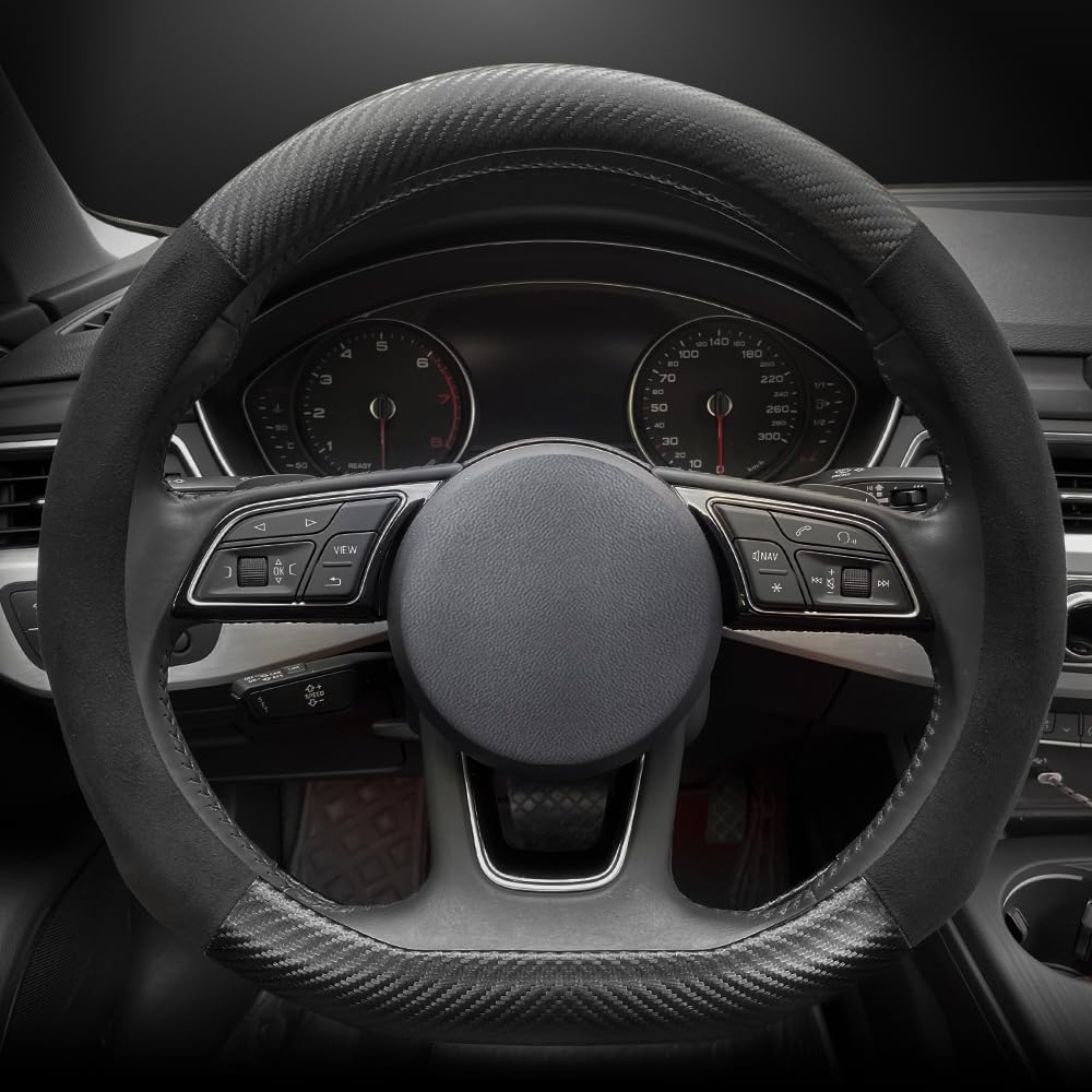 The D-shaped steering wheel cover is applicable to the flat bottom D-shaped steering wheel with an outer diameter of 14.5 ''- 15''. Tip: it may take some force to put on because tights are important. This product is shipped in the local Amazon warehouse in the United States, and you can receive it soon! If you receive the goods, have damage or other quality problems, please contact us as soon as possible, we will serve you wholeheartedly!