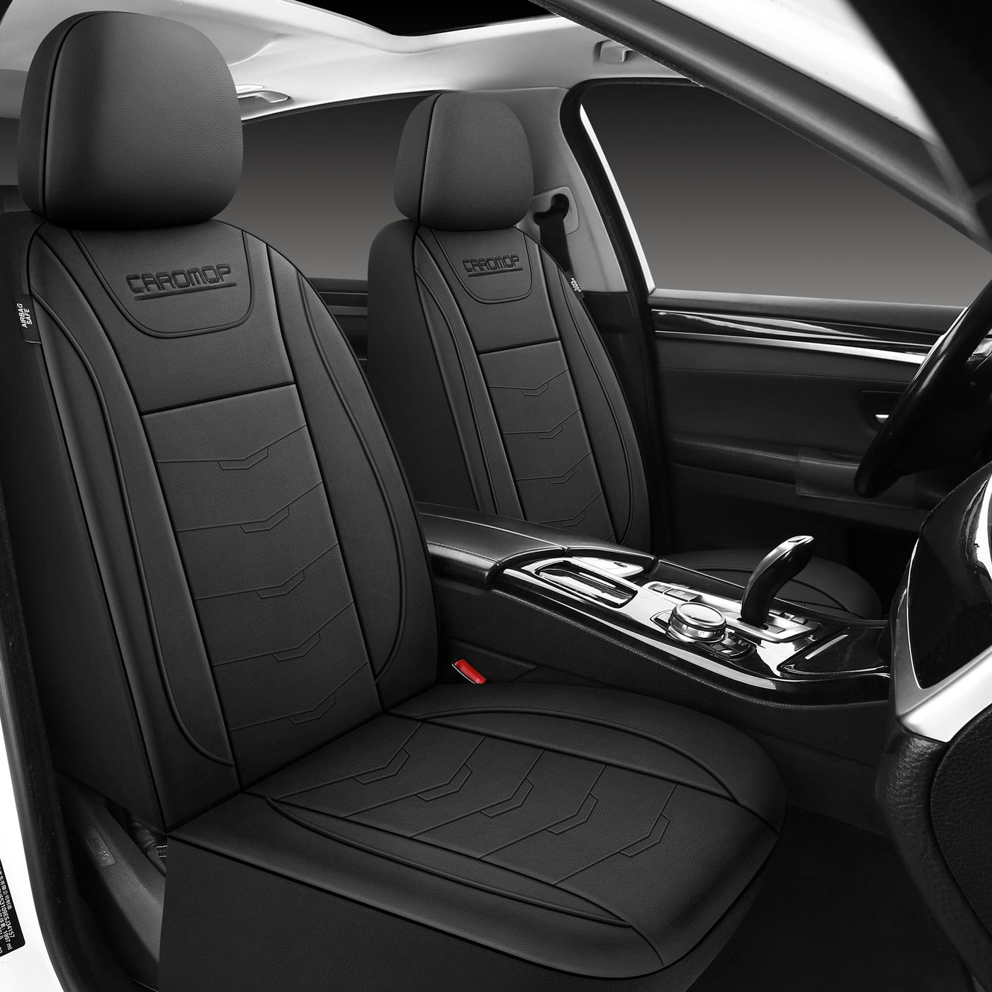 CAROMOP Luxury PU Leather Car Seat Covers 2 Front Set,Waterproof Faux Leather Automotive Seat Covers for Cars,Universal Car Inte