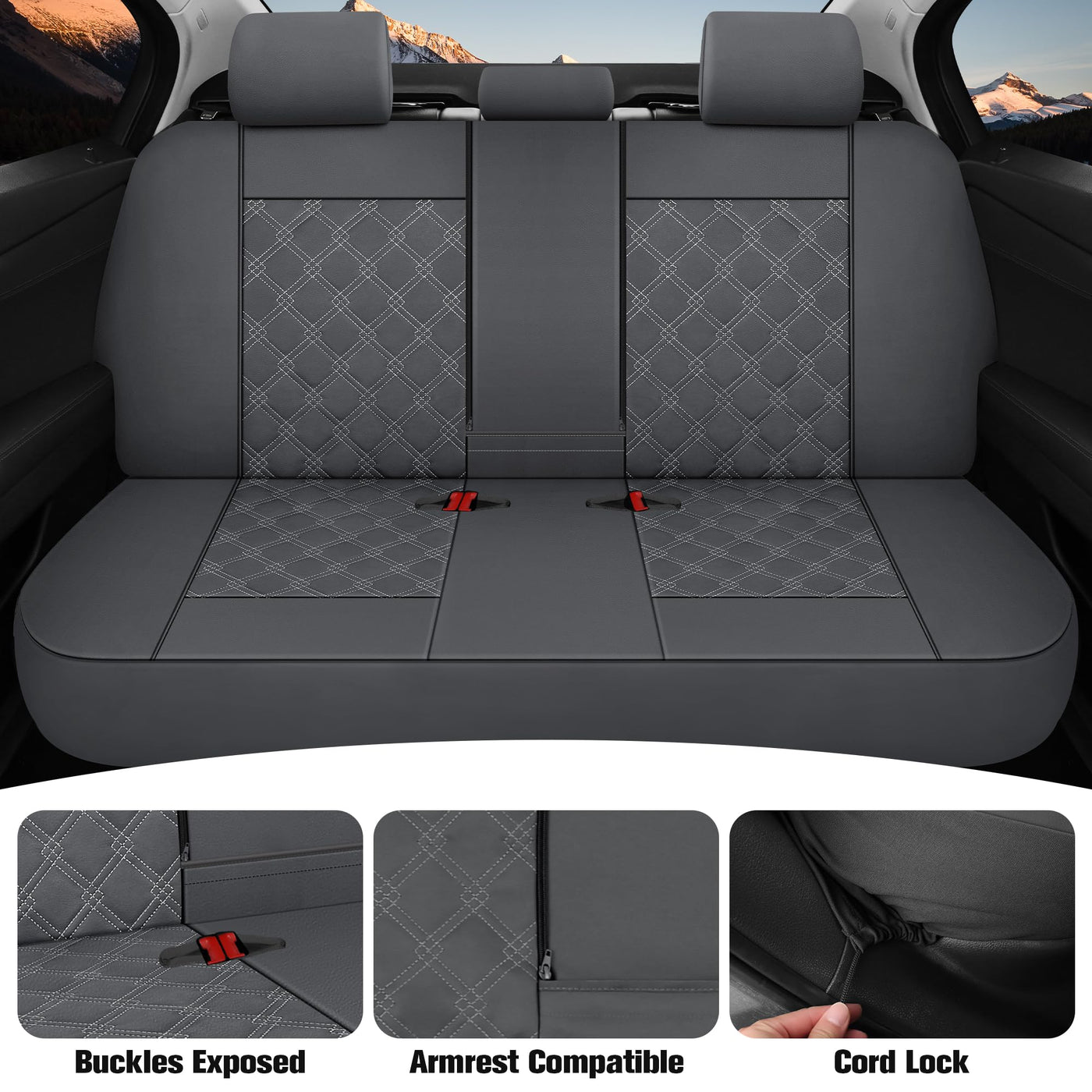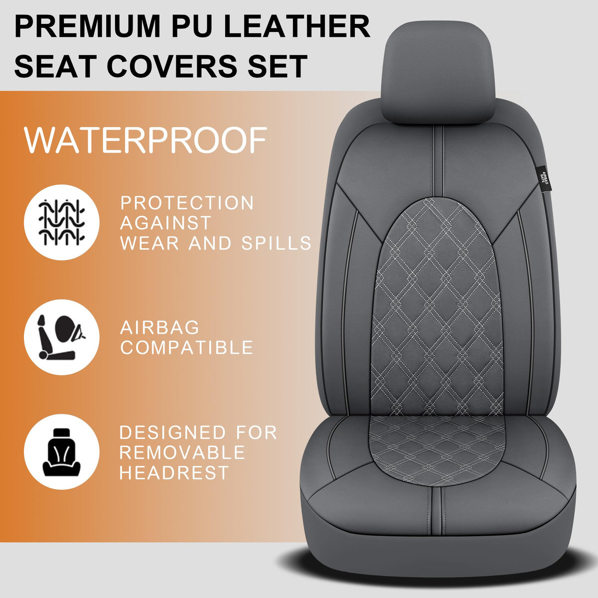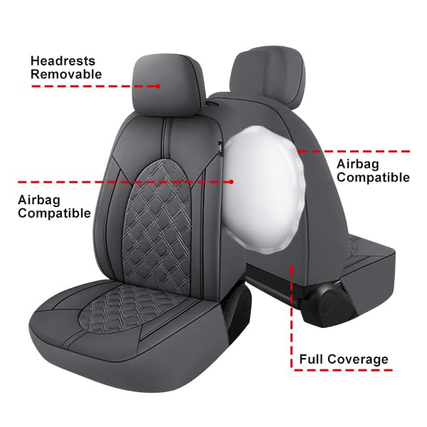 CAROMOP Luxury PU Leather Car Seat Covers Full Set-Waterproof Seat Protectors with Split Bench Seat Covers for Cars-Universal Ca