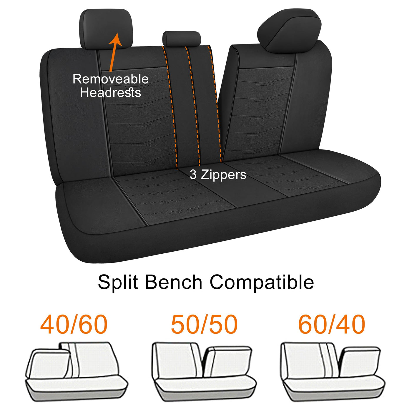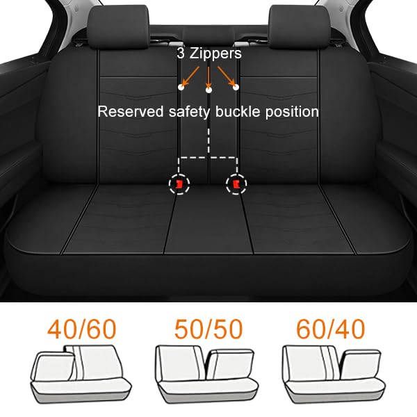 [LIGHT LUXURY DESIGN]These seat covers are perfectly conceptualized with playful, sporty lines blended with touches of extravagance to elevate your driving experience and offer you a blend of enjoyment and opulence on every journey.Whether you're commuting to work, driving for leisure, or on a long journey, these covers will refresh your mood and inspire you with their aesthetic appeal. | [AIRBAG COMPATIBILITY]Designed with airbag compatibility in mind. Our seat cover is crafted to work effectively with most airbag systems, prioritizing safety. With its smart fit design, it contours to your car seats for a snug and secure fit. | [SEPARATE DESIGNOUR] Split rear seat cover, The cover is divided into two parts, perfect for accommodating different seat configurations. The highlighted feature is the zipper unlocking mechanism for the center armrest, allowing convenient access and maintaining a seamless look.And the rear bench covers fits 40/60, 50/50, 60/40 spilit bench either. | [EASY-INSTALL]Acknowledging the inconvenience often associated with the need to cut the rear seat cover for safety buckle fitting, we have taken proactive steps to circumvent this issue. Each seat cover in our range comes with prearranged spots for the safety buckles, which simplifies the installation process significantly for you.To further enhance your user experience, we also provide detailed installation instructions as well as an informative installation video guide. | [UNIVERSAL ADAPTATION] Universal fit car seat covers, designed to fit a variety of vehicles including sedans, trucks, SUVs, and even commercial vehicles. Made from high quality materials, If you're unsure whether our seat covers are compatible with your vehicle, our team is here to assist you in confirming the fit.