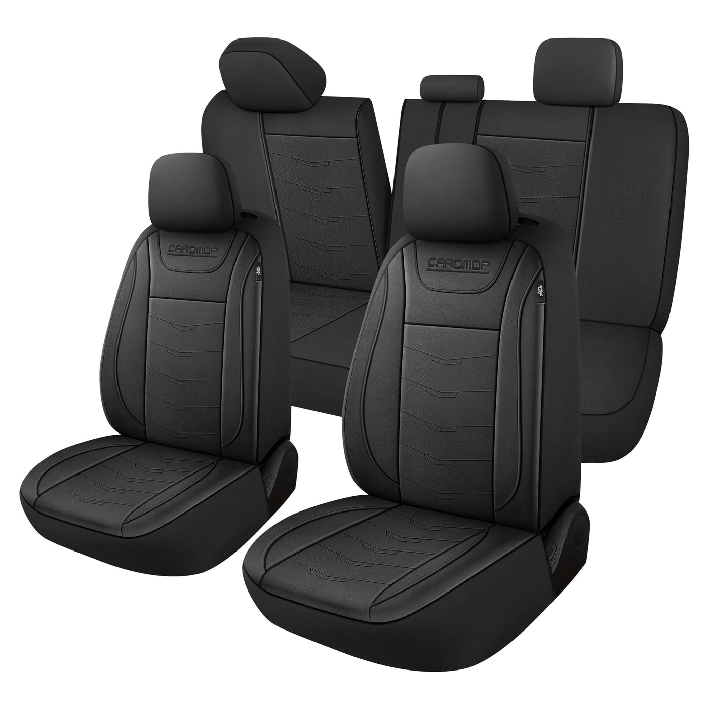 CAROMOP Premium PU Leather Car Seat Covers Full Set,Waterproof Split Bench Covers for Cars, Universal Car Interior Covers Seat P
