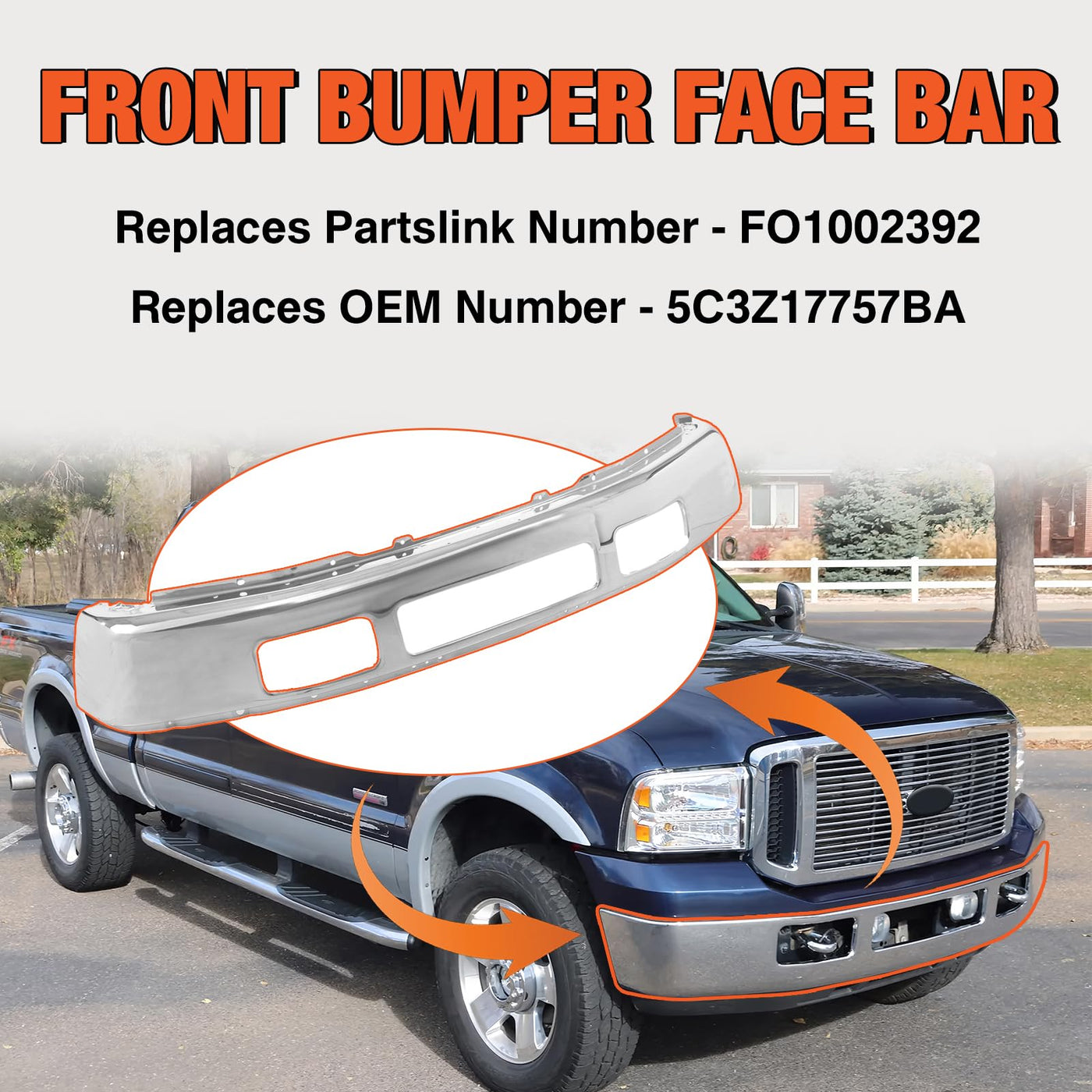 Item SpecificationsProduct Type - BumperPlacement on Vehicle - FrontMaterial - SteelColor / Finish - PolishedReplaces Partslink Number - FO1002392Replaces OEM Number - 5C3Z17757BAFitment DetailsCompatible For Ford2005 Excursion Eddie Bauer2005 Excursion Limited2005 Excursion XLT2005-2007 F-250 Super Duty Harley-Davidson Edition2005-2007 F-250 Super Duty King Ranch2005-2007 F-250 Super Duty Lariat2005-2007 F-250 Super Duty XL2005-2007 F-250 Super Duty XLT2005-2007 F-350 Super Duty Harley-Davidson Edition2005-2007 F-350 Super Duty King Ranch2005-2007 F-350 Super Duty Lariat2005-2007 F-350 Super Duty XL2005-2007 F-350 Super Duty XLT