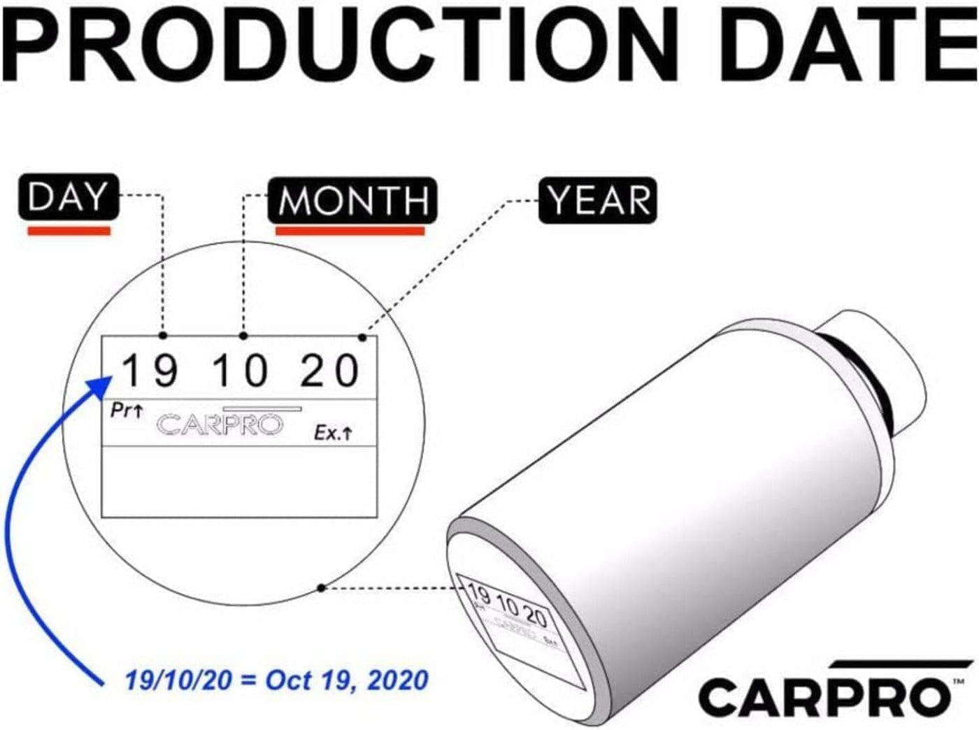 Q: What is the production date on CARPRO IronX, and how long is it effective?A: The production date on the CARPRO IronX bottle is indicated as 'Pr' or 'PD' in day/month/year format. The product is effective for at least two years from this production date.
