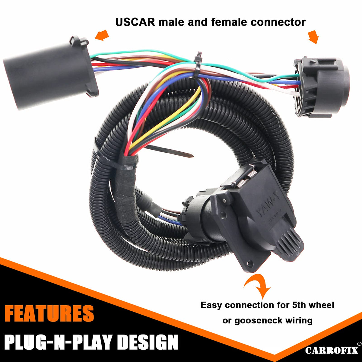 Carrofix Vehicle-Side Truck Bed 7-Pin Trailer Wiring Harness Extension - 5Th Wheel And Goose-Neck Custom Wiring Harness W/ 7-Pol