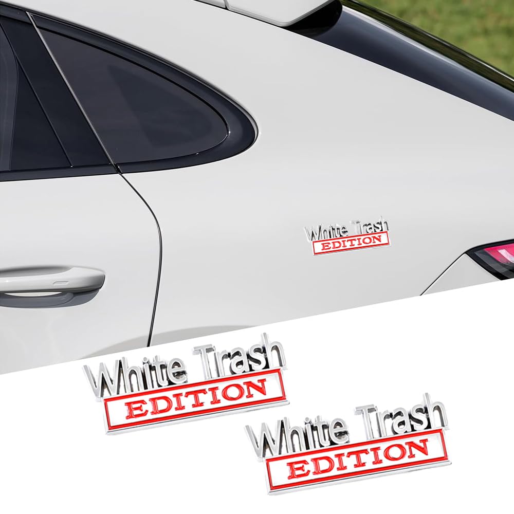 Carrun 2 Pcs White Trash Edition Emblem Front Hood Trunk Door Fender Bumper Metal Badge 3D Decal Sticker Fit For F-150 F250 F350