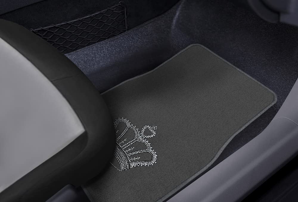 Carscover King Crown Crystal Diamond Bling Rhinestone Studded Carpet Car Suv Truck Floor Mats 4 Pcs - Charcoal