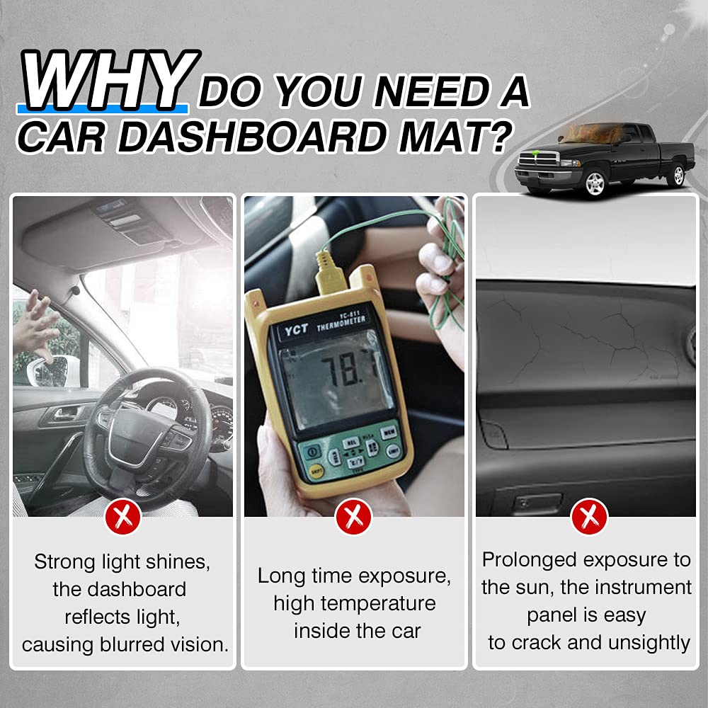 Cartist Compatible with Dash Cover Dodge Ram 1500 2500 3500 Truck 1994 1995 1996 1997 Dashboard Cover Mat Non-Slip Pad Carpet Su