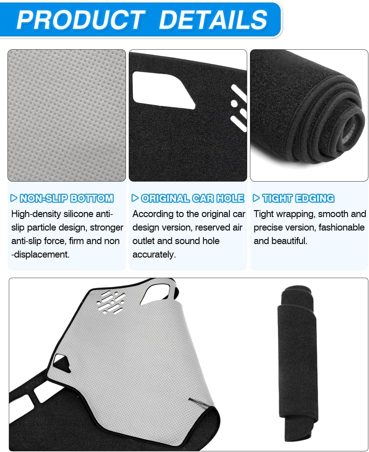Vehicle Specific: Our dashboard cover is suitable for Kia Sorento 2016 2017 2018 2019 2020. All vents and sensor openings pre-cut for a factory finish look. | Anti-slip Silicone Back: Soft and elegant-looking high-quality felt materials featuring durable, odorless and non-toxic while improving the interior look of your car. Non-slip backing system design works well to make it firmer placed. | Dashboard Protection: A great way to protect your vehicle's dashboard from harmful UV rays which may cause the dashboard to crack and fade. It also can prevent dirt and dust from falling on the dashboard and block scratches. Ideal choice in extreme weather areas to keep the dash cooler in the summer and warmer in the winter. | Make Driving Safer: Dash mats help reduce hazardous windshield glare and reflected light from oncoming vehicles when you are driving at night to offer a safer driving experience. | Install Within Minutes: Clean your car dashboard, line up with all the spots, and then fix the dash cover with adhesive cushions. No worrying about slipping while driving.