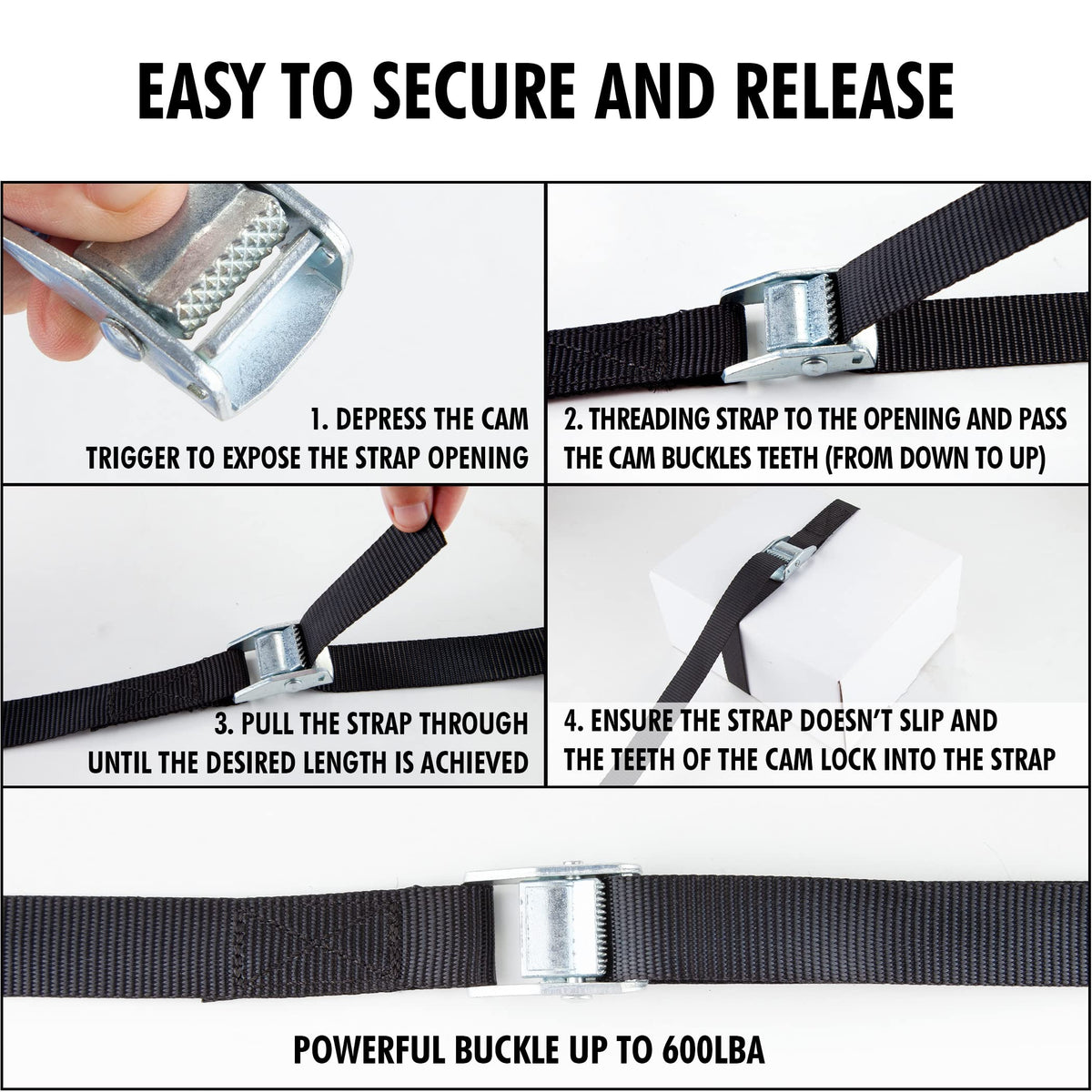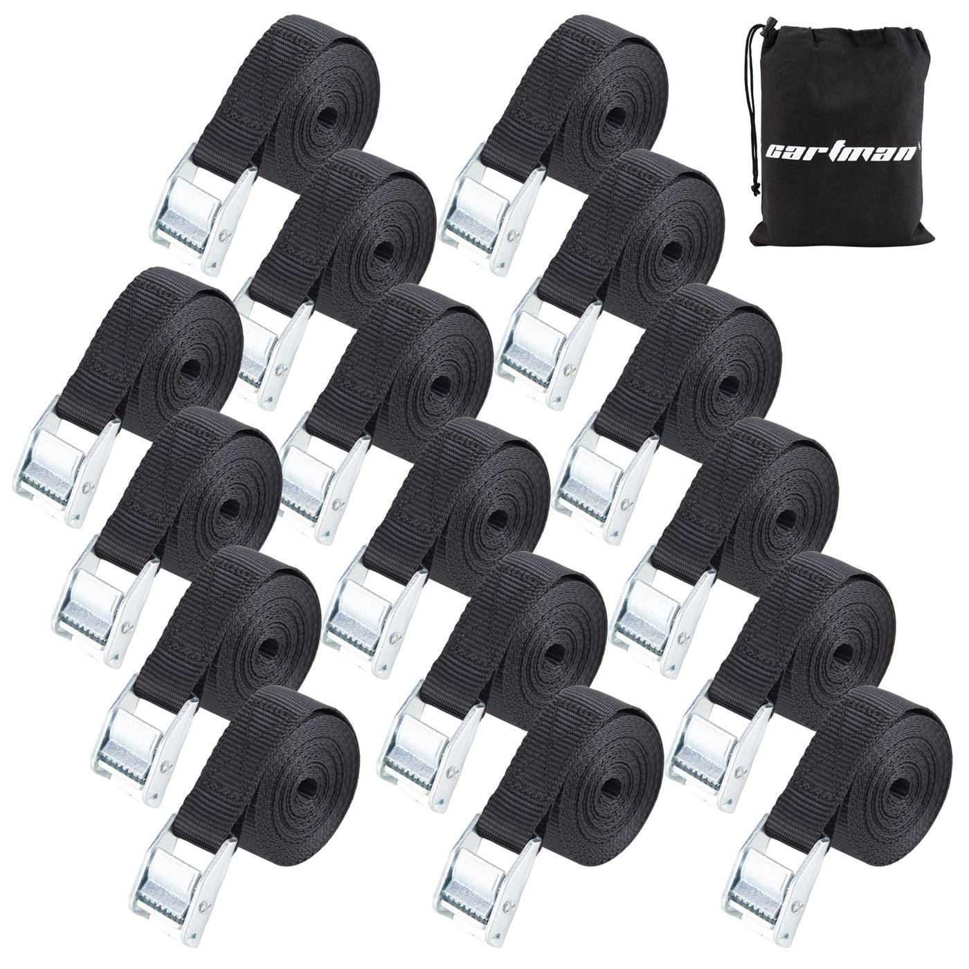 Cartman 1'' X 12' Lashing Straps Cargo Tie-Down Strap Up To 600Lbs, 16Pk In Carry Bag, Black