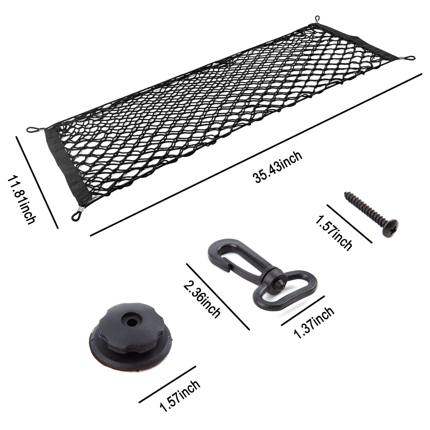 The net can adjust to fit most trunks, pickup truck beds or SUV rear cargo space. The most practical and convenient organizer for your stuff like balls, toys, hand bags, first aid kit, groceries, bottles, cans, and the likes to be organized and put them together in a secure place to access easily when needed in your most urgent mode. Keeps all your items from rolling around while driving.