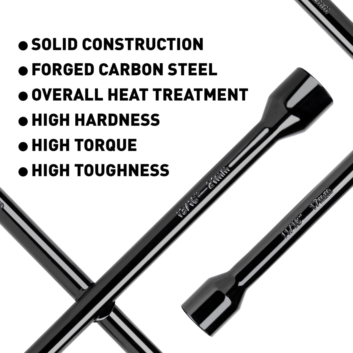 Q: Is the lug wrench durable and resistant to corrosion?A: Yes, this lug wrench is made from forged heat-treated carbon steel, providing exceptional durability. It features a corrosion-resistant black finish that helps maintain its appearance and function over time.