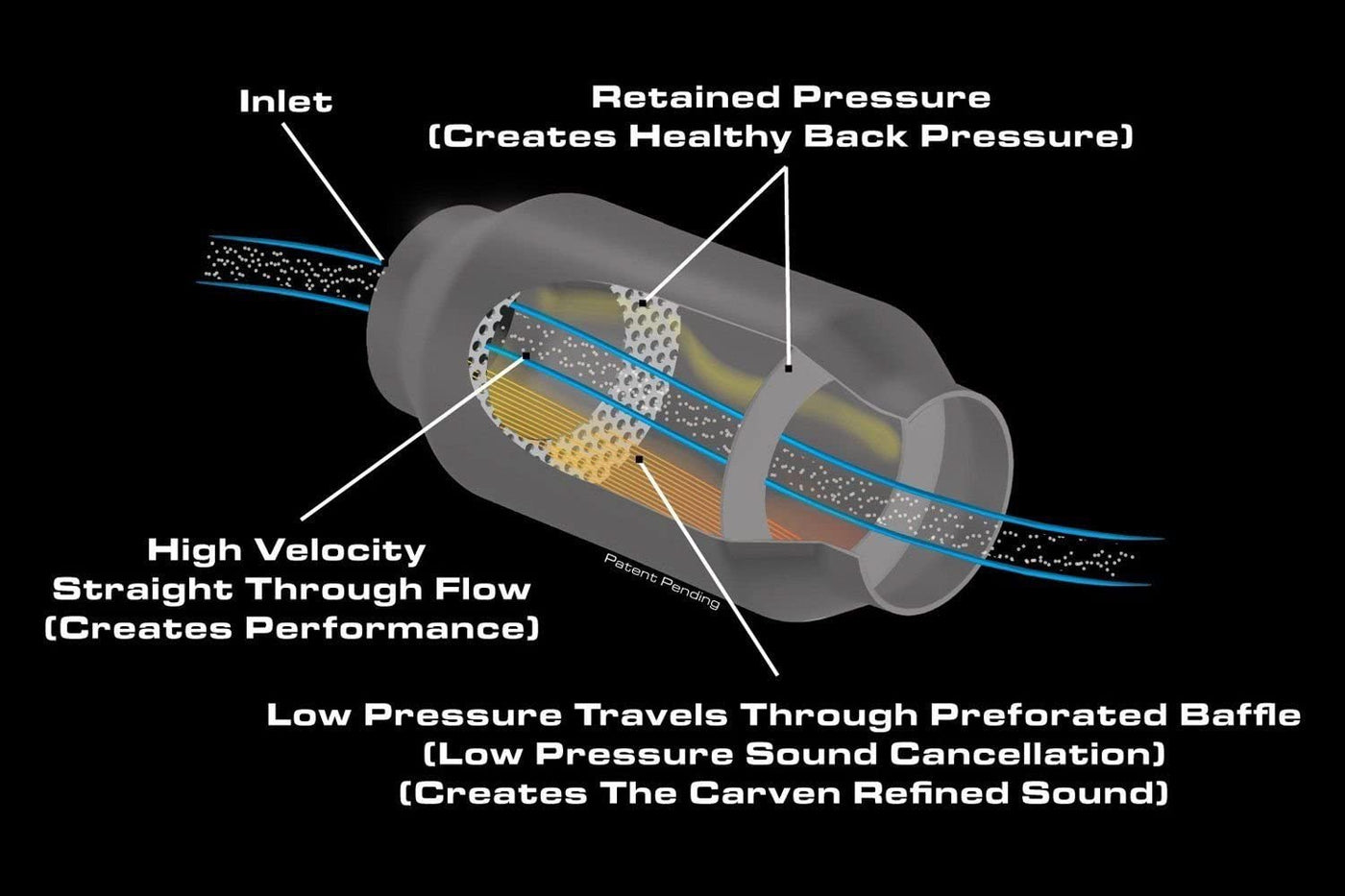 Q: What is the inlet diameter of the Carven Exhaust R-Series Performance Muffler?A: The Carven Exhaust R-Series Performance Muffler features a 3 inch inlet diameter, which allows for optimal airflow and performance enhancement.