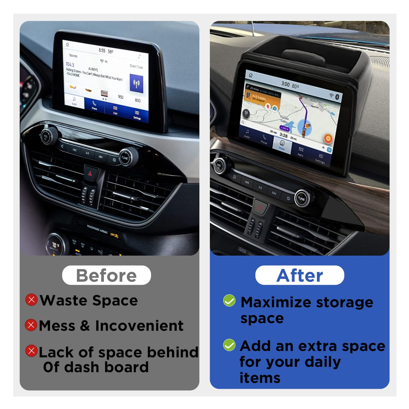 Carwiner Center Console Dash Storage Tray For 2020-2024 2025 Ford Escape Accessories Console Dashboard Organizer With Cellphone