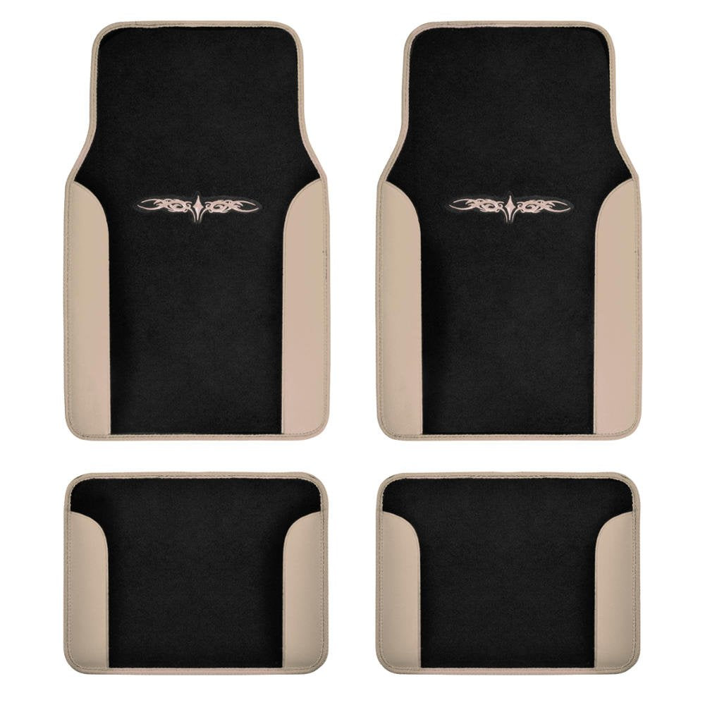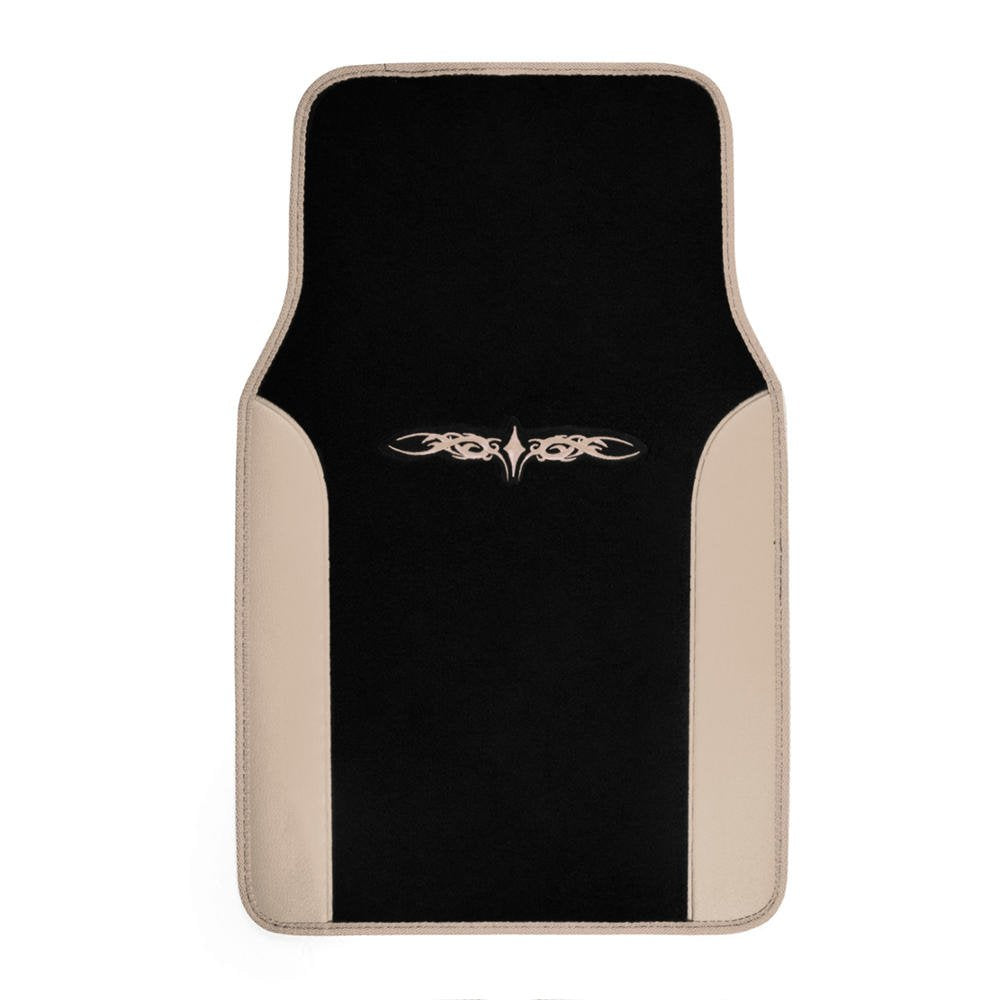 Carxs Fresh Two-Tone Carpet Floor Mats, Tribal Tattoo Design With Vinyl Trim For Car Sedan Truck Suv, Front & Rear Set Of 4, Bei