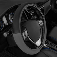 Caterpillar Two Tone Ergonomic Soft Leather Grip Steering Wheel Cover - Strong, Durable And Comfortable Universal Size 14.5-15.5 Inch (Dark Gray/Black) (Casw-2221-Cc)