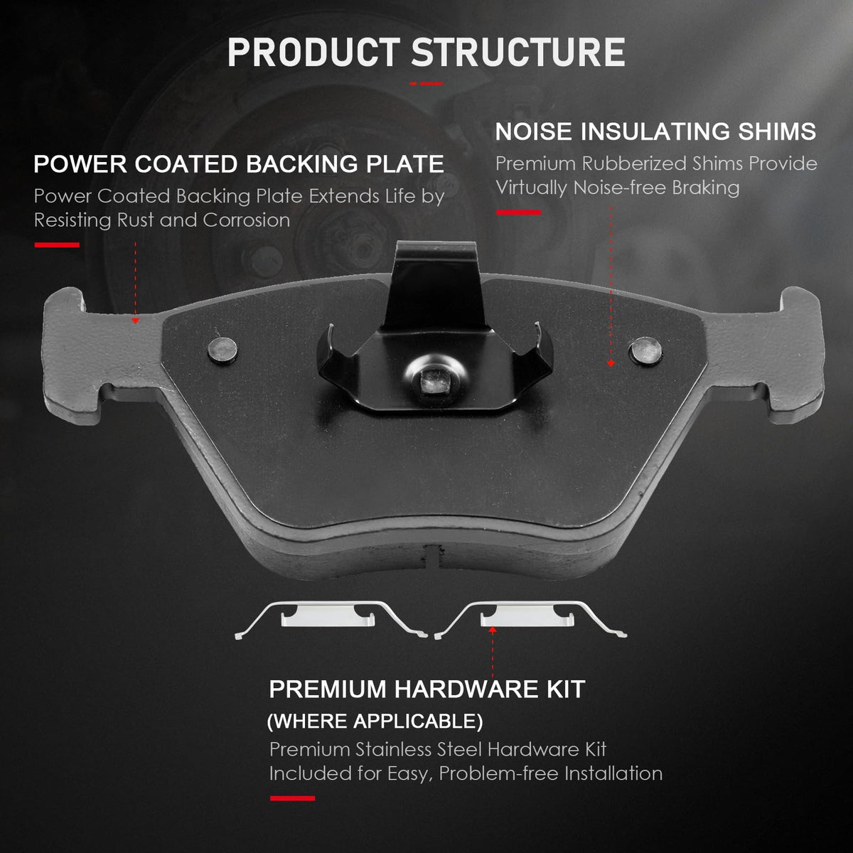 Fitment:2001-2006 For BMW 330Ci 3.0L 2979CC l6 GAS DOHC Naturally Aspirated2001-2005 For BMW 330i 3.0L 2979CC l6 GAS DOHC Naturally Aspirated2001-2005 For BMW 330xi 3.0L 2979CC l6 GAS DOHC Naturally Aspirated2005-2006 For BMW M3 3.2L 3246CC l6 GAS DOHC Naturally Aspirated2004-2010 For BMW X3 2.5L 2494CC 152Cu. In. l6 GAS DOHC Naturally Aspirated2004-2006 For BMW X3 3.0L 2979CC l6 GAS DOHC Naturally Aspirated2011 For BMW X3 3.0L 2979CC l6 GAS DOHC Turbocharged2007-2011 For BMW X3 3.0L 2996CC l6 GAS DOHC Naturally Aspirated2006-2008 For BMW Z4 2.5L 2494CC 152Cu. In. l6 GAS DOHC Naturally Aspirated2003-2006 For BMW Z4 3.0L 2979CC l6 GAS DOHC Naturally Aspirated2006-2008 For BMW Z4 3.0L 2996CC l6 GAS DOHC Naturally Aspirated2006-2008 For BMW Z4 3.2L 3246CC l6 GAS DOHC Naturally AspiratedSpecifications:Placement on Vehicle: Front Left and RightBrake Pad Compound: CeramicOEM PART NUMBER(S):4 X Front Ceramic Brake Pads - 309.09460,EHT946,D946-7592Package Including:4 Ceramic Brake Pads