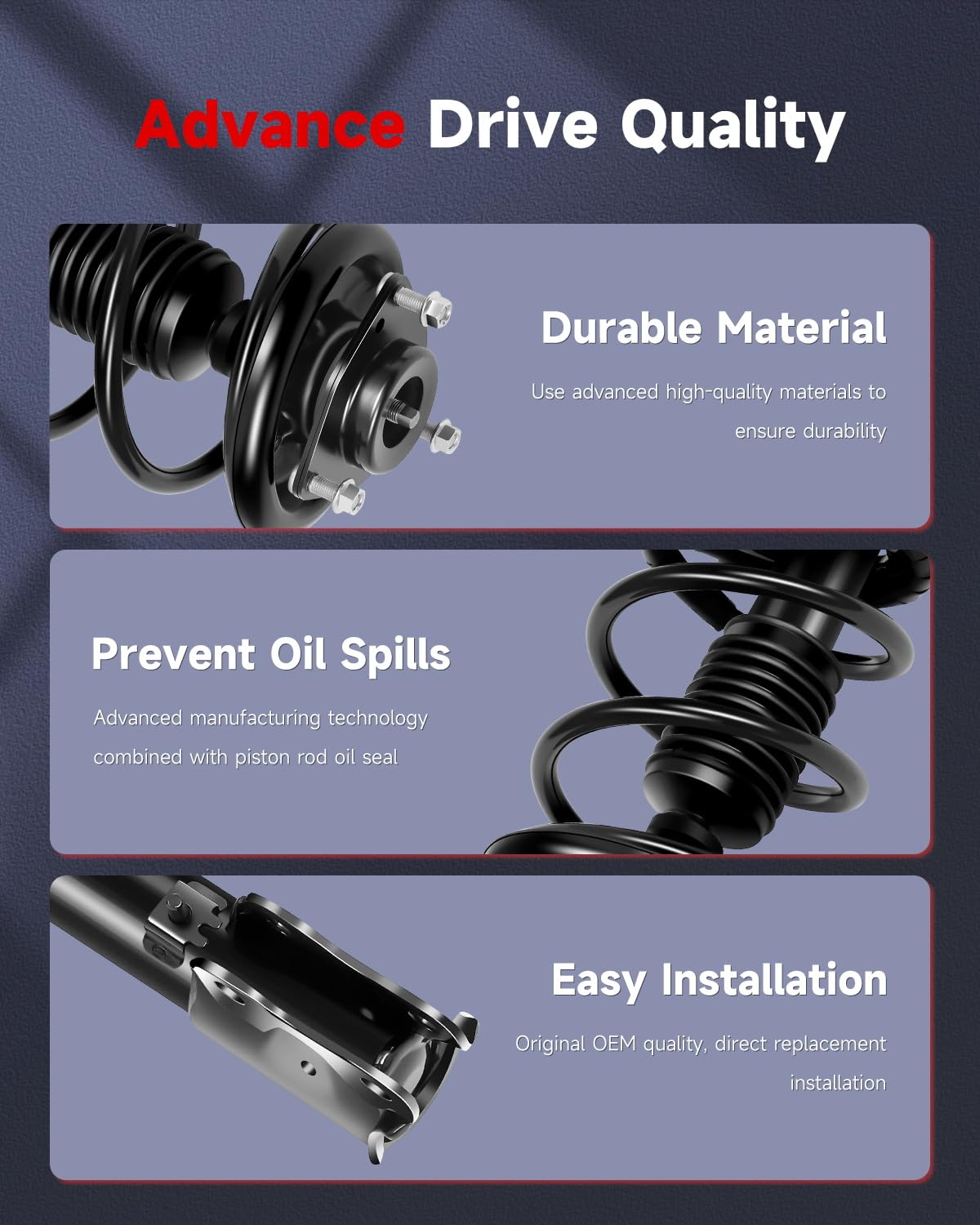 Fitment Information:2007 for Mitsubishi Outlander ES Sport Utility 4-Door2007-2009 for Mitsubishi Outlander LS Sport Utility 4-Door2007-2009 for Mitsubishi Outlander XLS Sport Utility 4-DoorIt's Time to Replace Your Old Struts- Noise While Driving: Bad strut bearings may cause a popping noise or a binding feeling when the steering wheel is turned- Rough Ride: Over time, struts lose their dampening ability, producing a bumpy ride and causing the car to bottom out- Body Roll When Turning: Worn struts may cause the vehicle to exhibit excessive body roll when you turn- Abnormal Tire Wear: A cupped wear pattern in the tire tread is often a sign of bad struts- Fluid Leaks: Struts are filled with hydraulic fluid, which can leak out when they begin to wear- Increased Stopping Distance: Bad struts can allow the vehicle to bounce around when braking, increasing the time it takes to stop- Pulling And Wandering: Damaged or extremely worn struts can hurt the vehicle's alignmentPackage Included:2PCS Front Strut Assembly