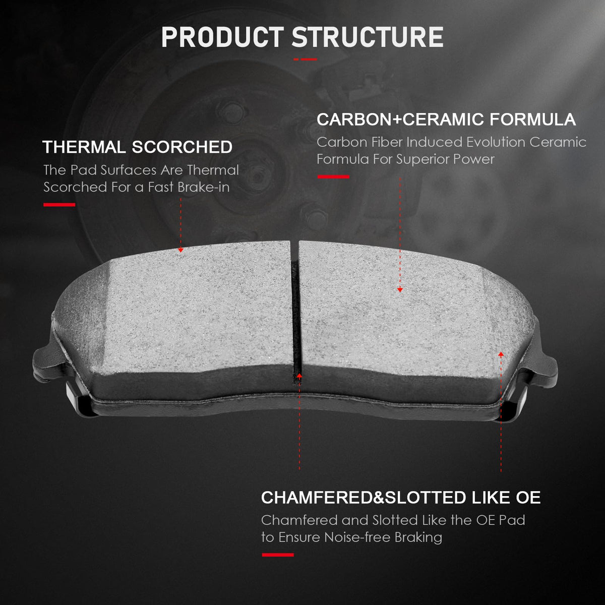 Cciyu D1056 D1057 Front & Rear Professional Ceramic Brake Pads Set Fit For 2005-2019 For Chrysler 300,2009-2019 For Dodge Challe