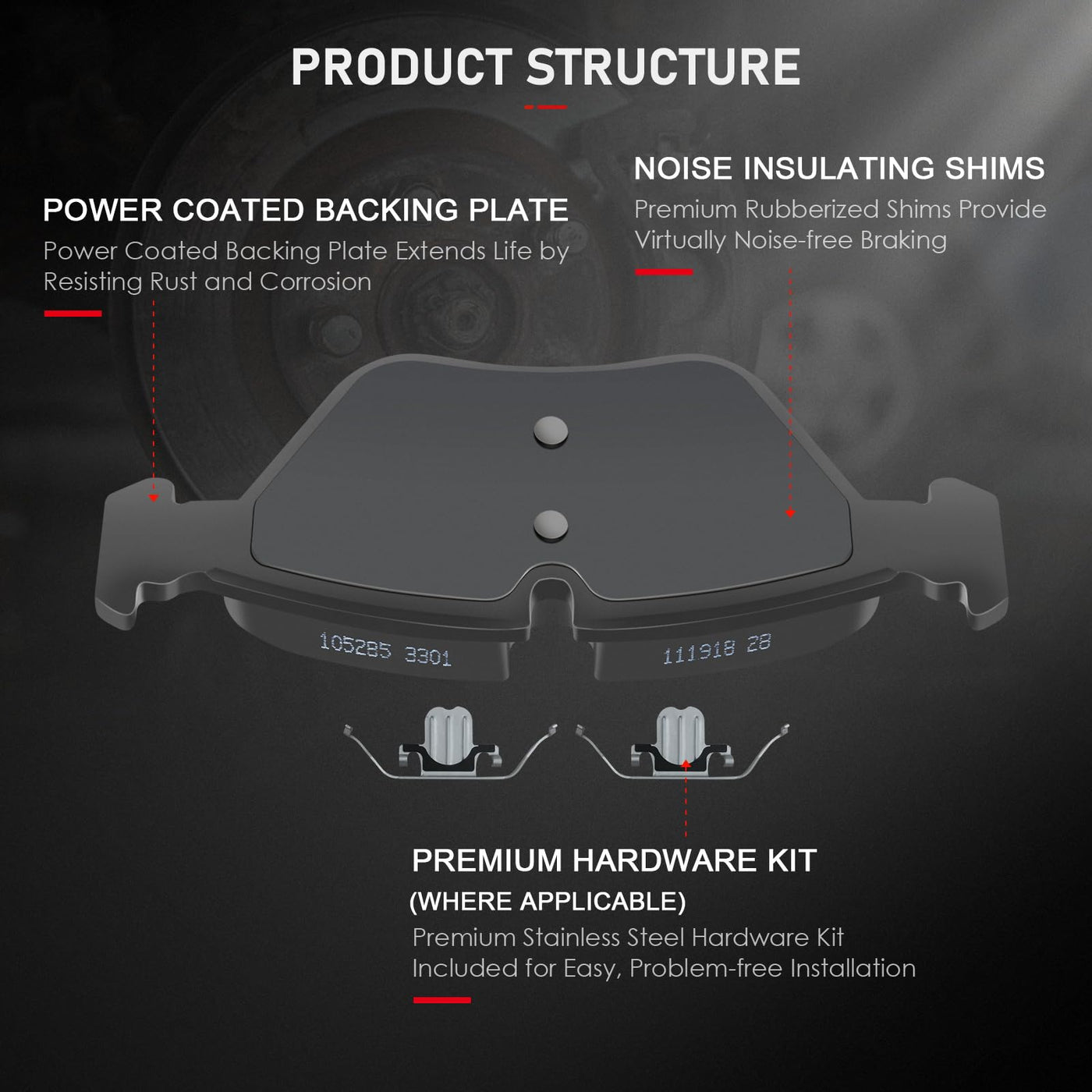 Cciyu D1061 D1042 Front & Rear Semi-Metallic Disc Brake Pads Kit For Bmw X5 2007-2018,For Bmw X6 2010-2019 8Pcs