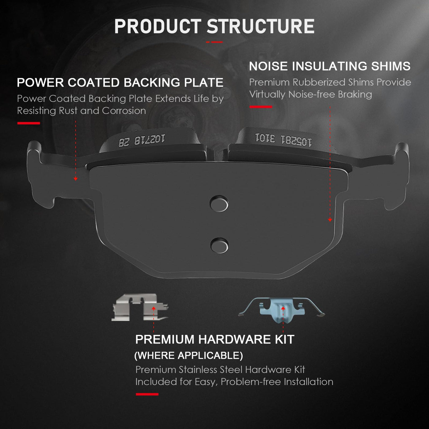 Cciyu D1294 D1042 Front & Rear Professional Ceramic Brake Pads Set Fit For 2007-2017 For Bmw X5,2010-2017 For Bmw X6
