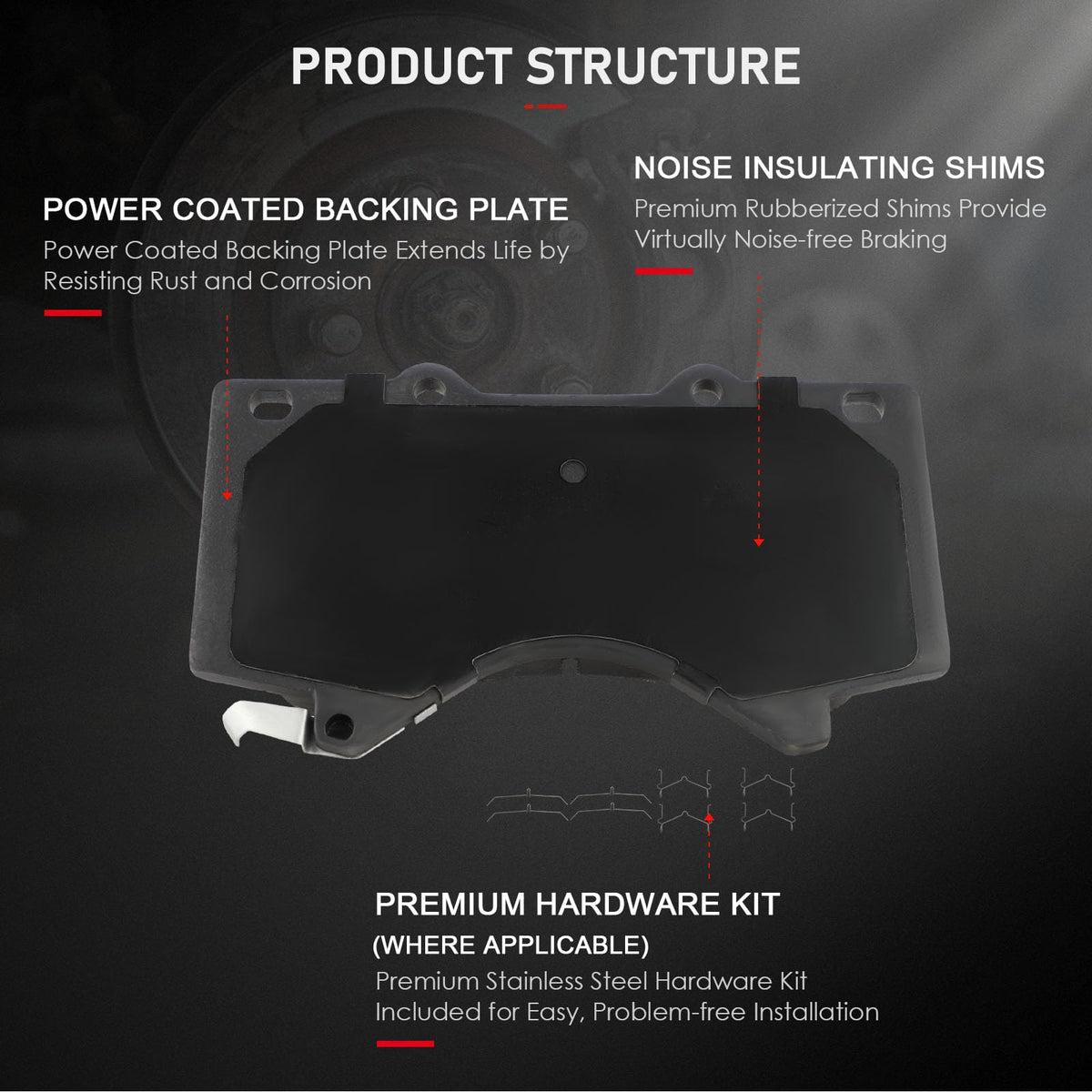 SPECIFICATIONS:Placement on Vehicle: Front Left and RightBrake Pad Material: CeramicOEM Part Numbers: ATD1303C,D1303-8419FITMENT:2008-2011 2013-2019 For Lexus LX570 5.7L2008-2011 2013-2019 For Toyota For Land Cruiser 5.7L2010-2012 For Toyota For Sequoia 4.6L2008-2009 For Toyota For Sequoia 4.7L2008-2019 For Toyota For Sequoia 5.7L2007-2014 For Toyota For Tundra 4.0L2010-2019 For Toyota For Tundra 4.6L2007-2009 For Toyota For Tundra 4.7L2007-2019 For Toyota For Tundra 5.7LPACKAGE INCLUDING:4*Ceramic Disc Brake Pads Kit