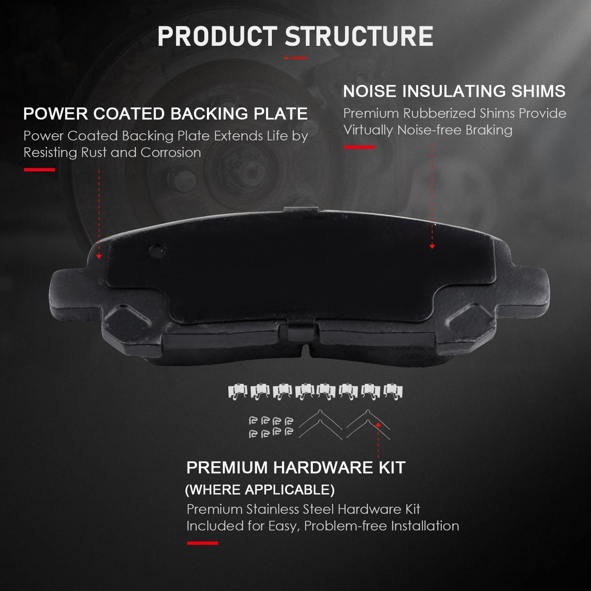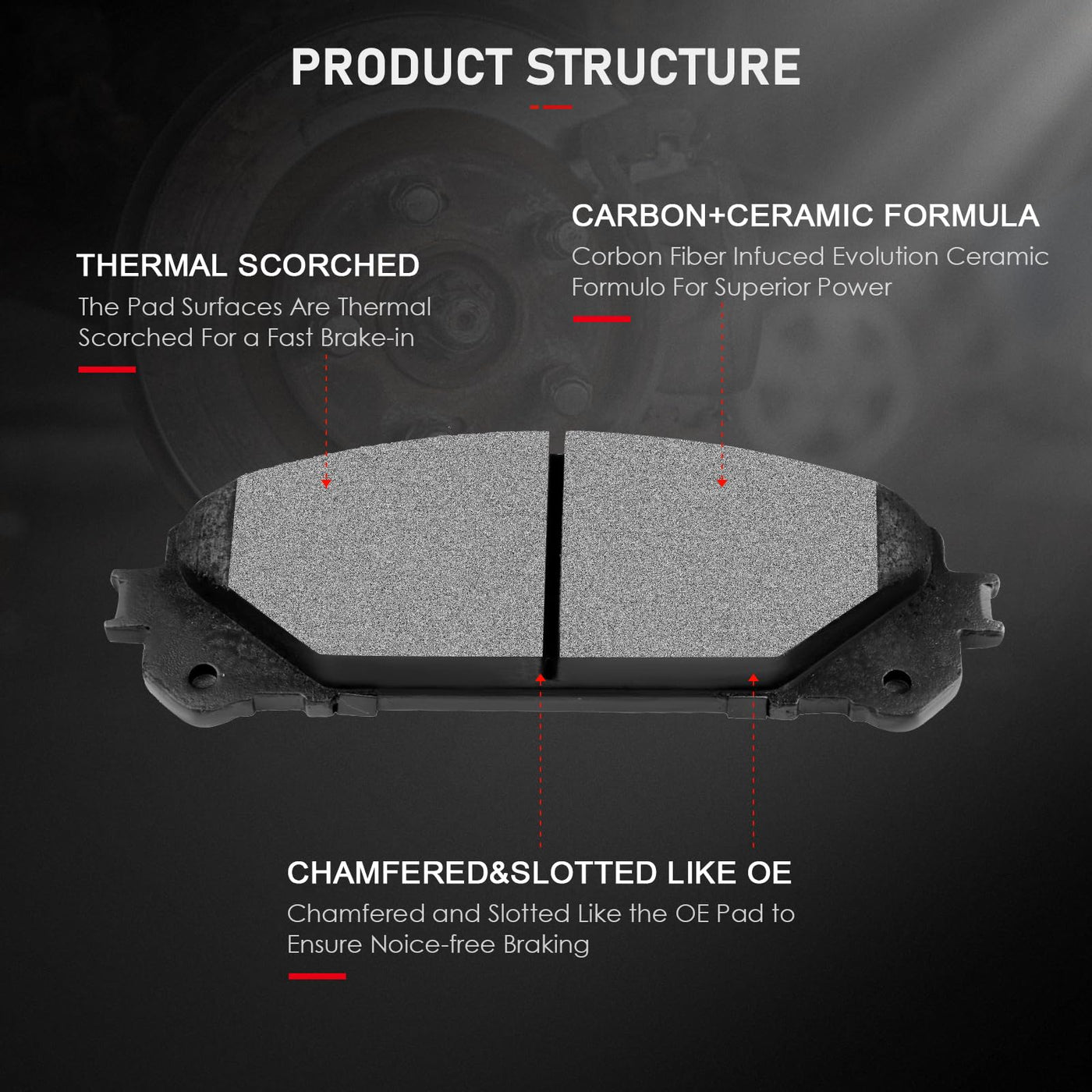Cciyu D1324 D1325 Ceramic Front Rear Disc Brake Pad Set Fit For 2008-2013 For Toyota For Highlander,8Pcs