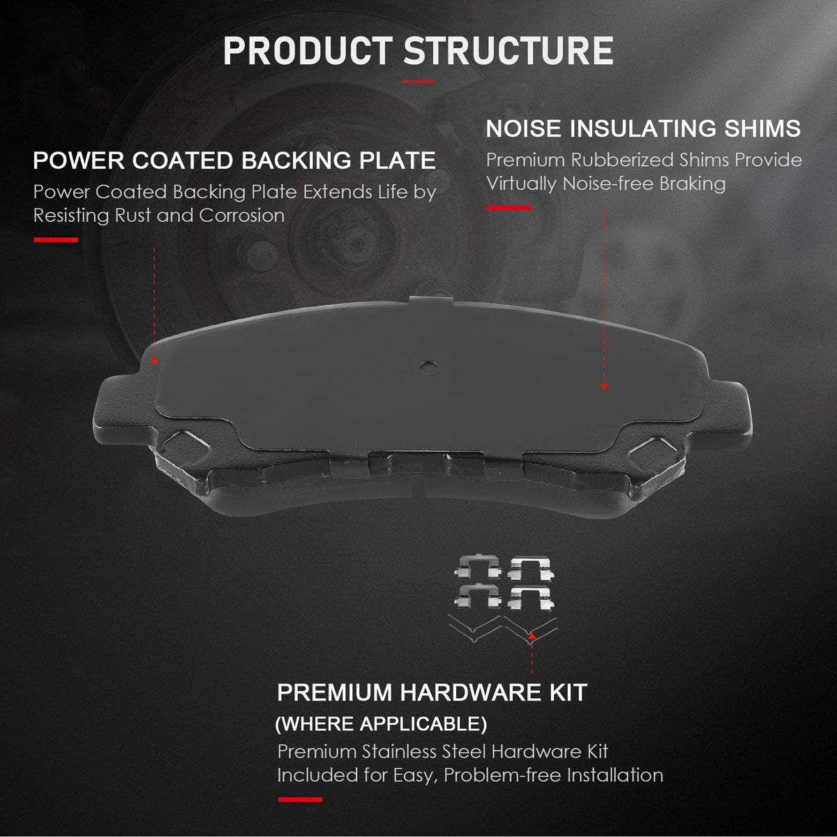 Cciyu D1374 D905 Front & Rear Disc Brake Pads Kit For Nissan Maxima 2009-2014 2016-2017 8Pcs