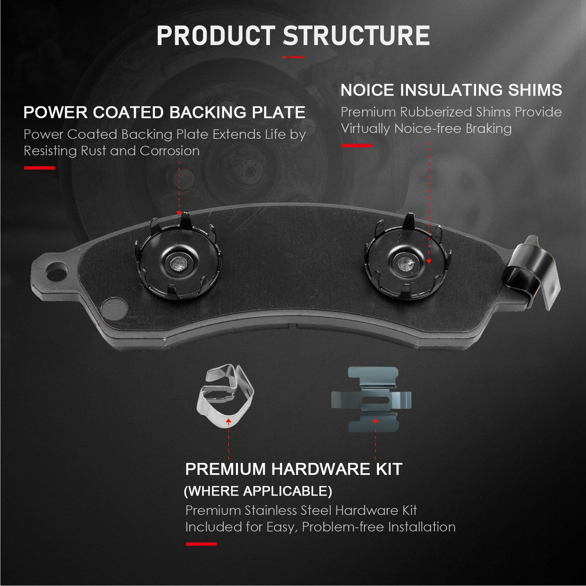 Cciyu D412 D627 Front & Rear Professional Ceramic Brake Pads Set Fit For 1994-2001 2003 2004 For Ford Mustang