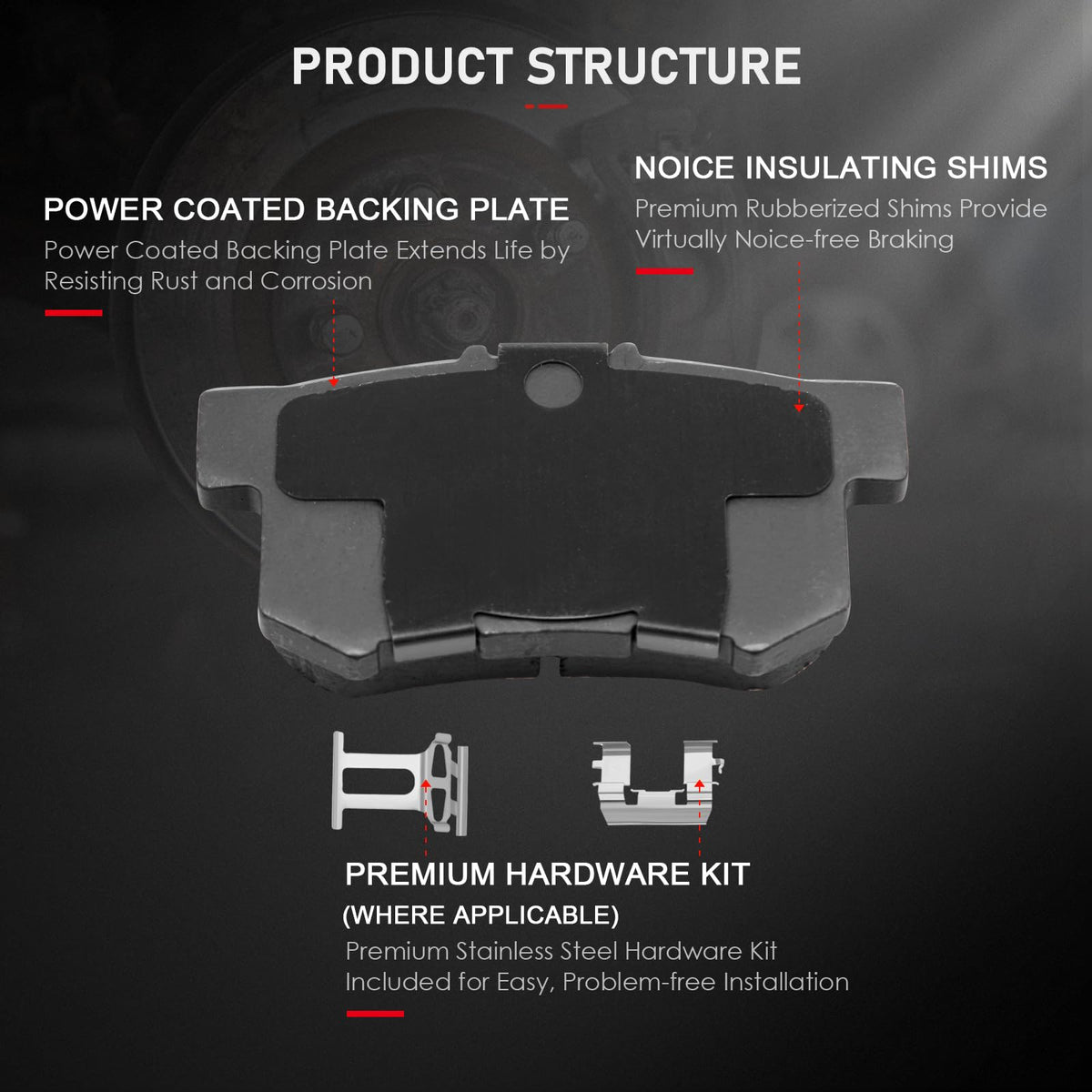Cciyu D536 D787 8Pcs Front & Rear Ceramic Brake Pads Kits 2001-2003 For Acura Cl, 1999-2004 For Acura Rl, 1999-2008 For Acura Tl